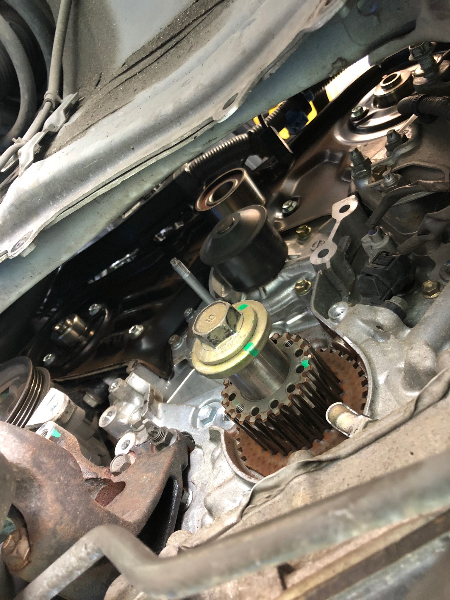 この部品がタイミングベルトの張りを調整してくれるオートテンショナー