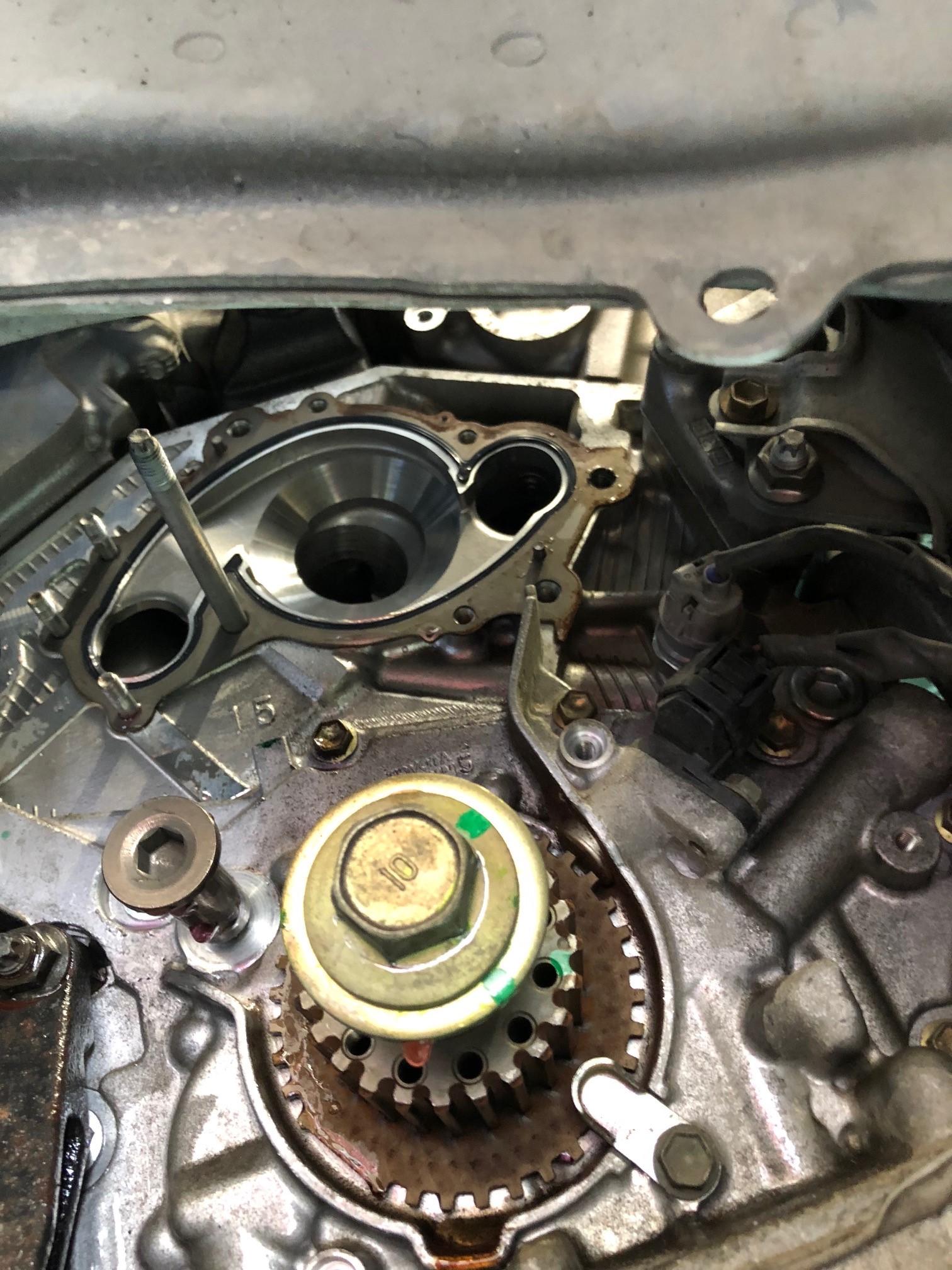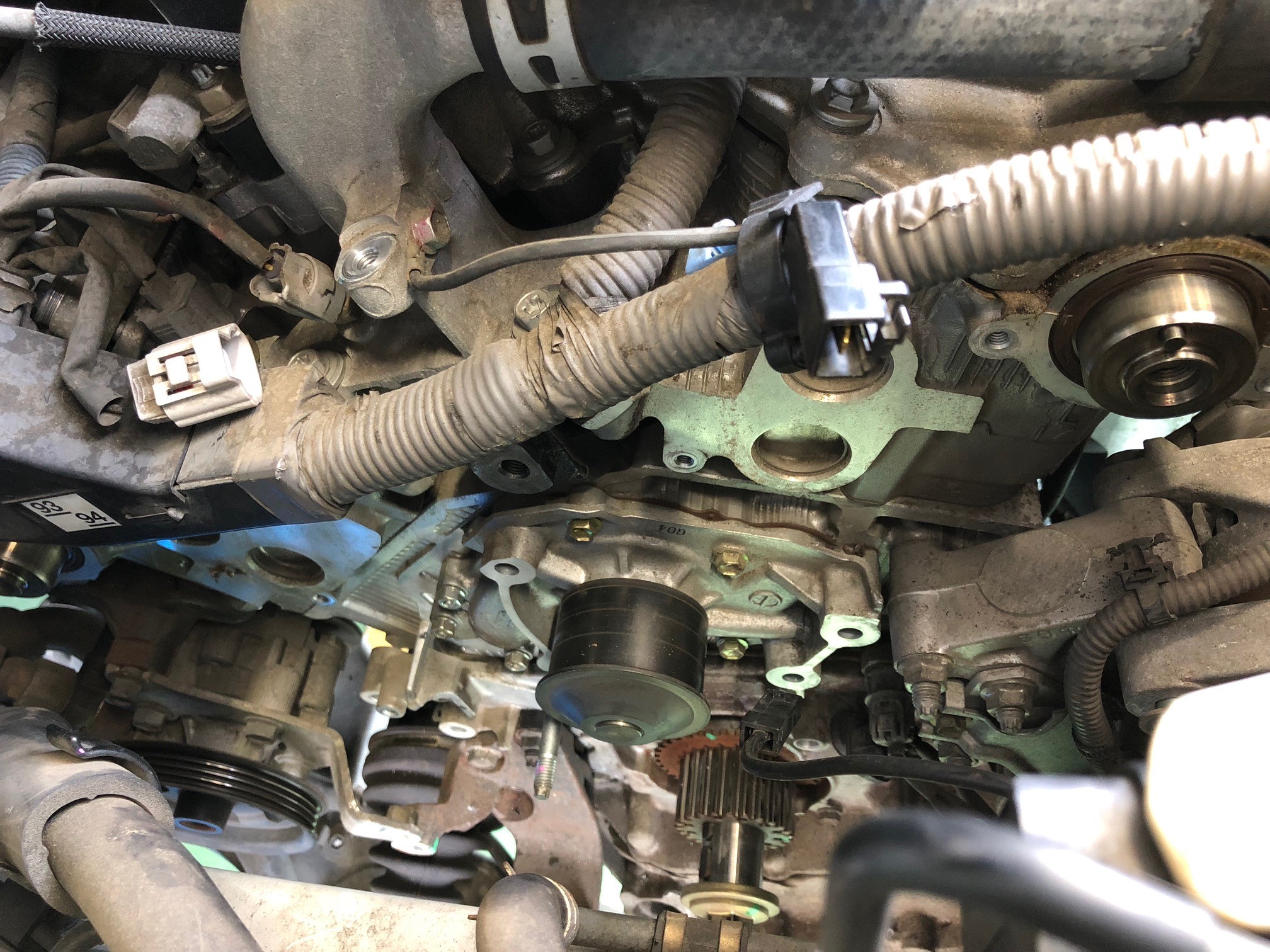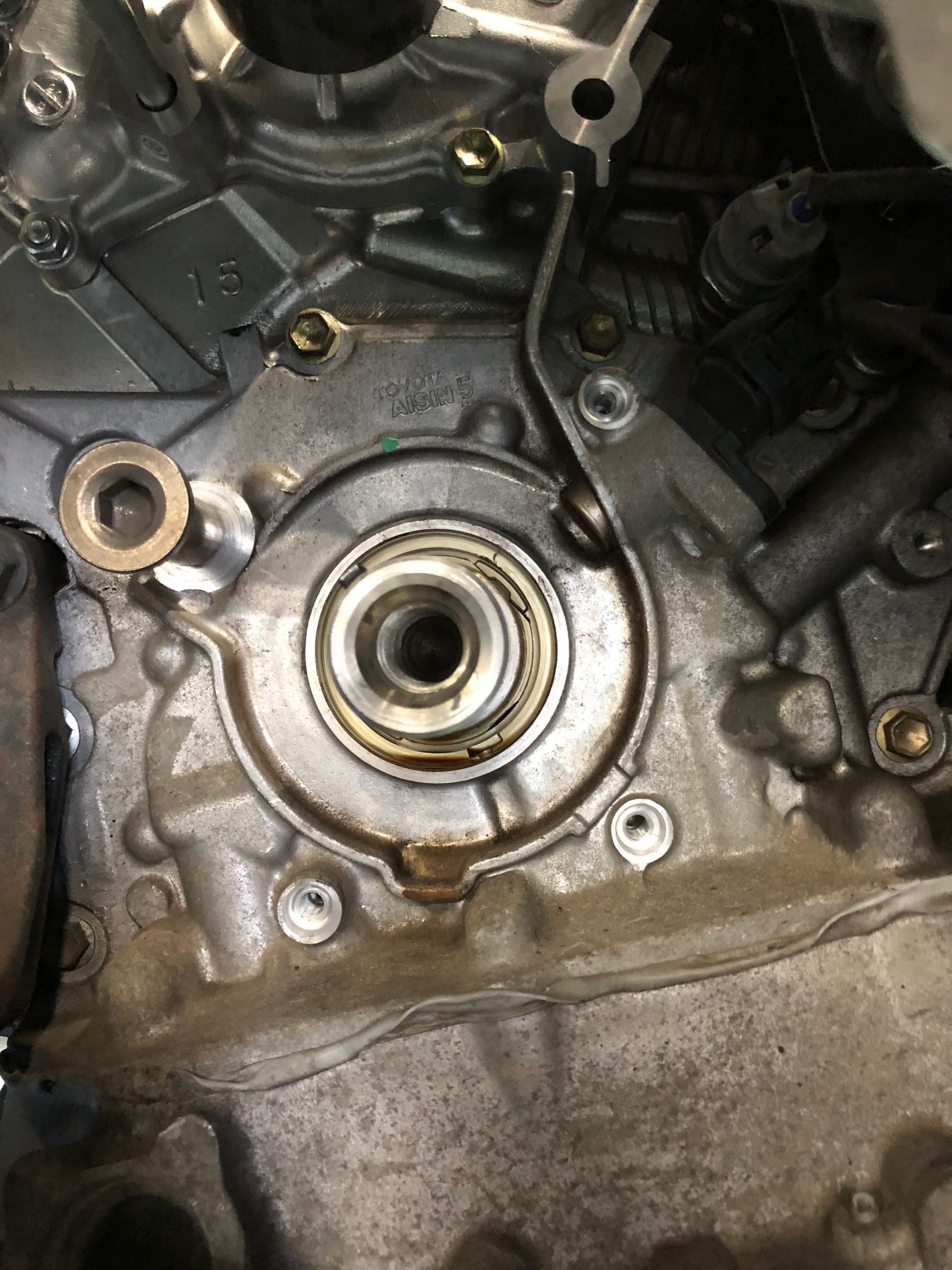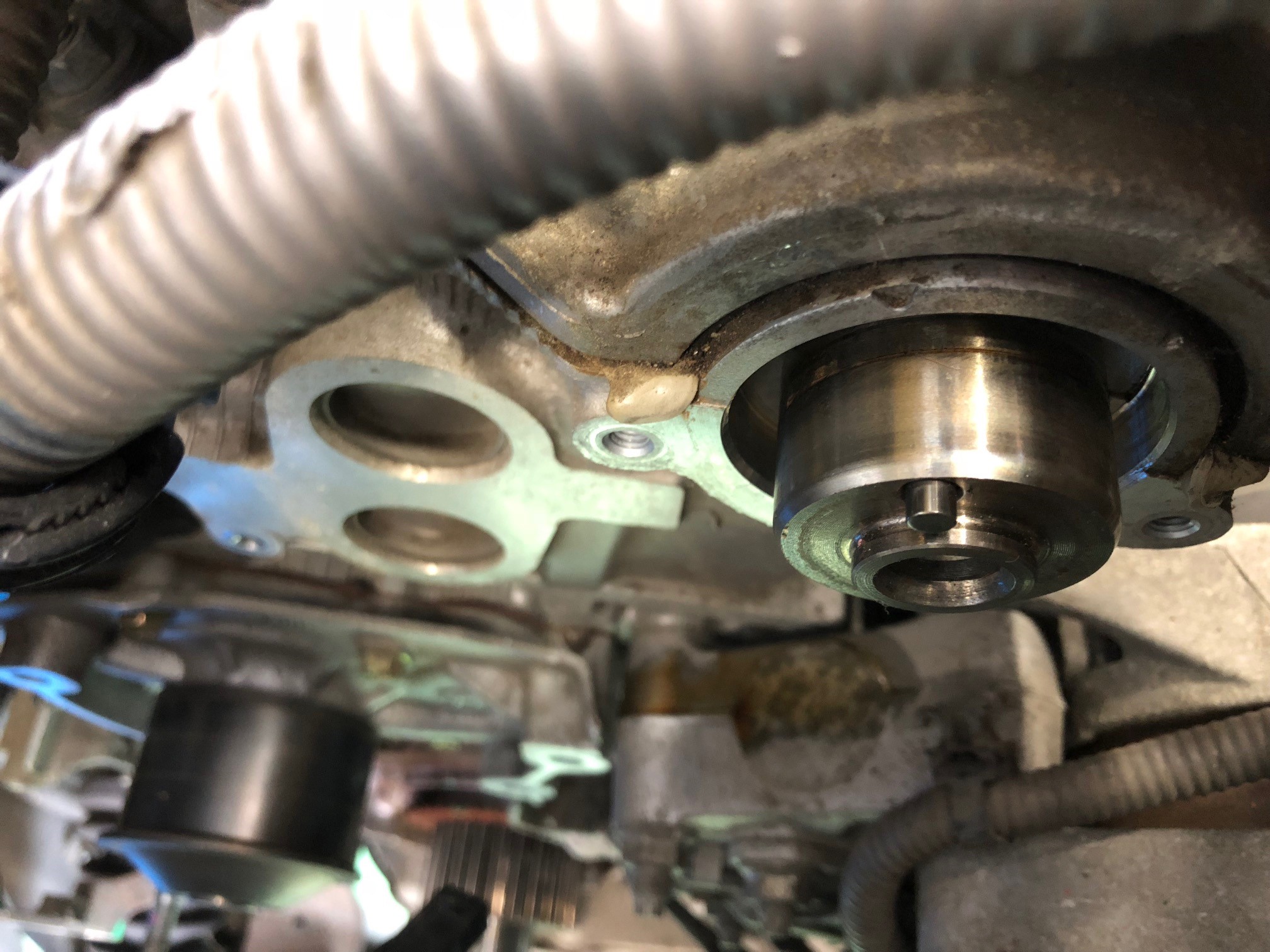 交換します。しかし、このエンジンはカムプーリーとバックプレート