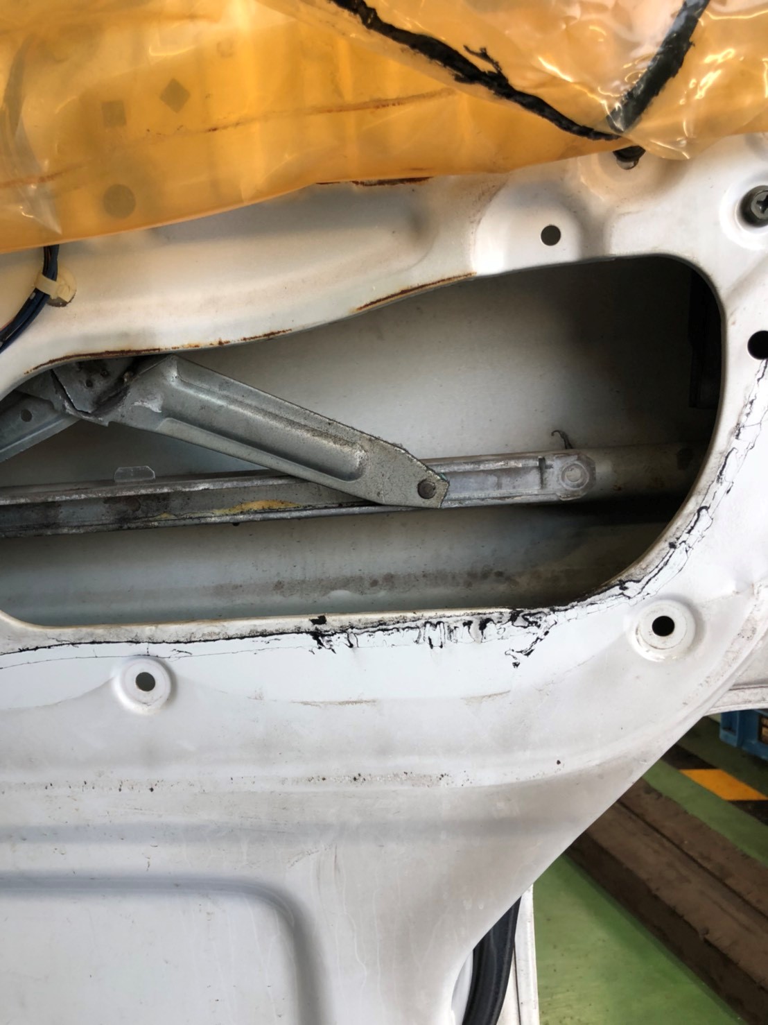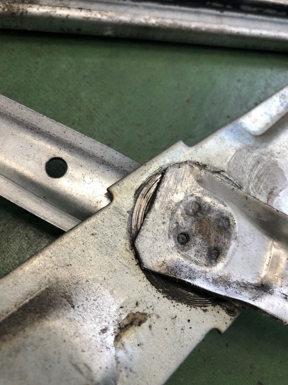 パネルを外して確認したら、窓を開け閉めするレギュレーターが壊れかけていました。