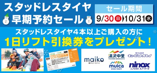 スタッドレスタイヤ4本ご購入で、1日スキーリフト券をプレゼントしています!
