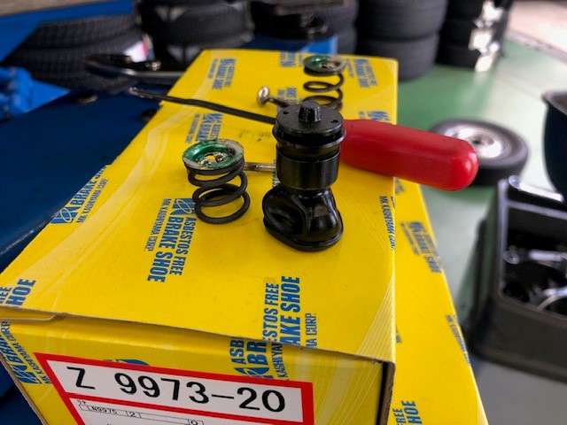 ホイールシリンダーはカップキットで修理です。