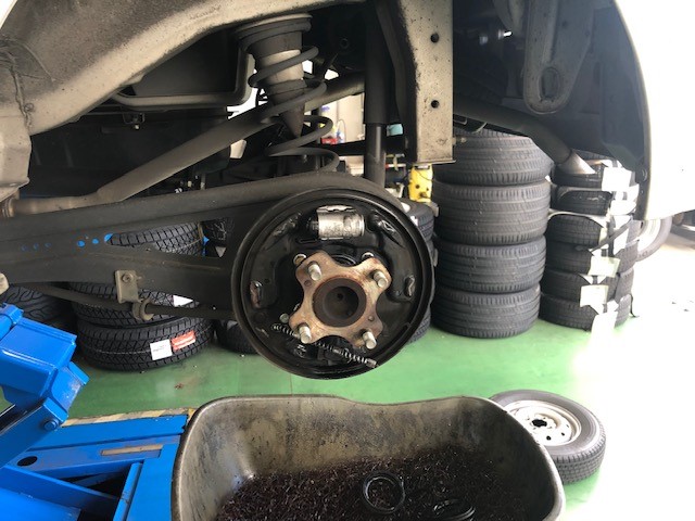 走行も14万キロでしたのでホイールシリンダーからのオイル滲み修理とライニングの残量も少なかったので同時作業です!