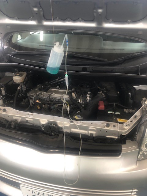 取付が終わったらエンジンを始動し液剤を注入していきます!