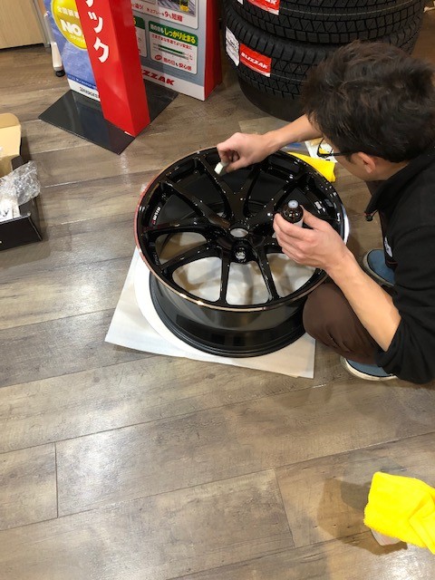 高価なホイールですのでコーティングを行います。