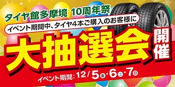 来週金曜日から始まる周年祭。 お陰様で10周年!!12/5(金).6(土).7 (日) 10:00オープン!! タイヤご購入のお客様には抽選会も・・ スタッドレスタイヤ、夏タイヤのご購入をお考えのお客様はベストプライスでご提供致します。 この期間の間にご予約して頂き、後日のお取付も出来ます...