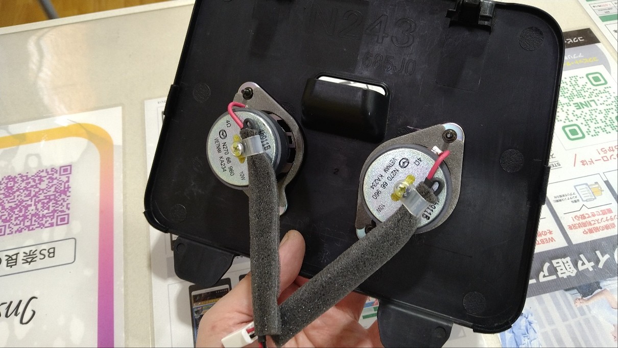 「①純正シート内蔵スピーカーを移植する」は、シート後ろの小物入れを加工して、内部にスピーカーを仕込みました(細かい作業大好きです)。