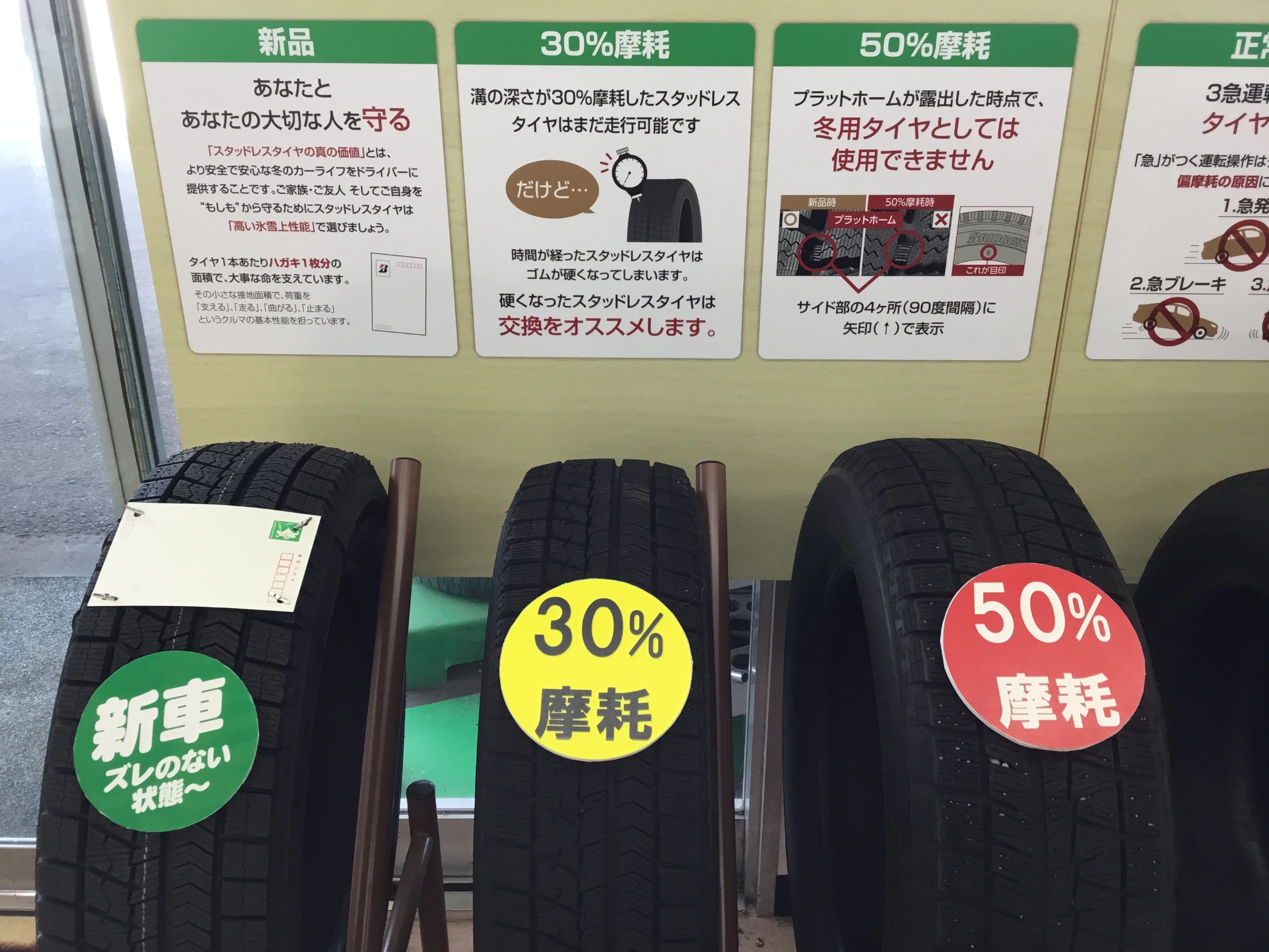 冬タイヤは柔らかさが大事になるので硬くなってるタイヤは要注意です(;゚Д゚)