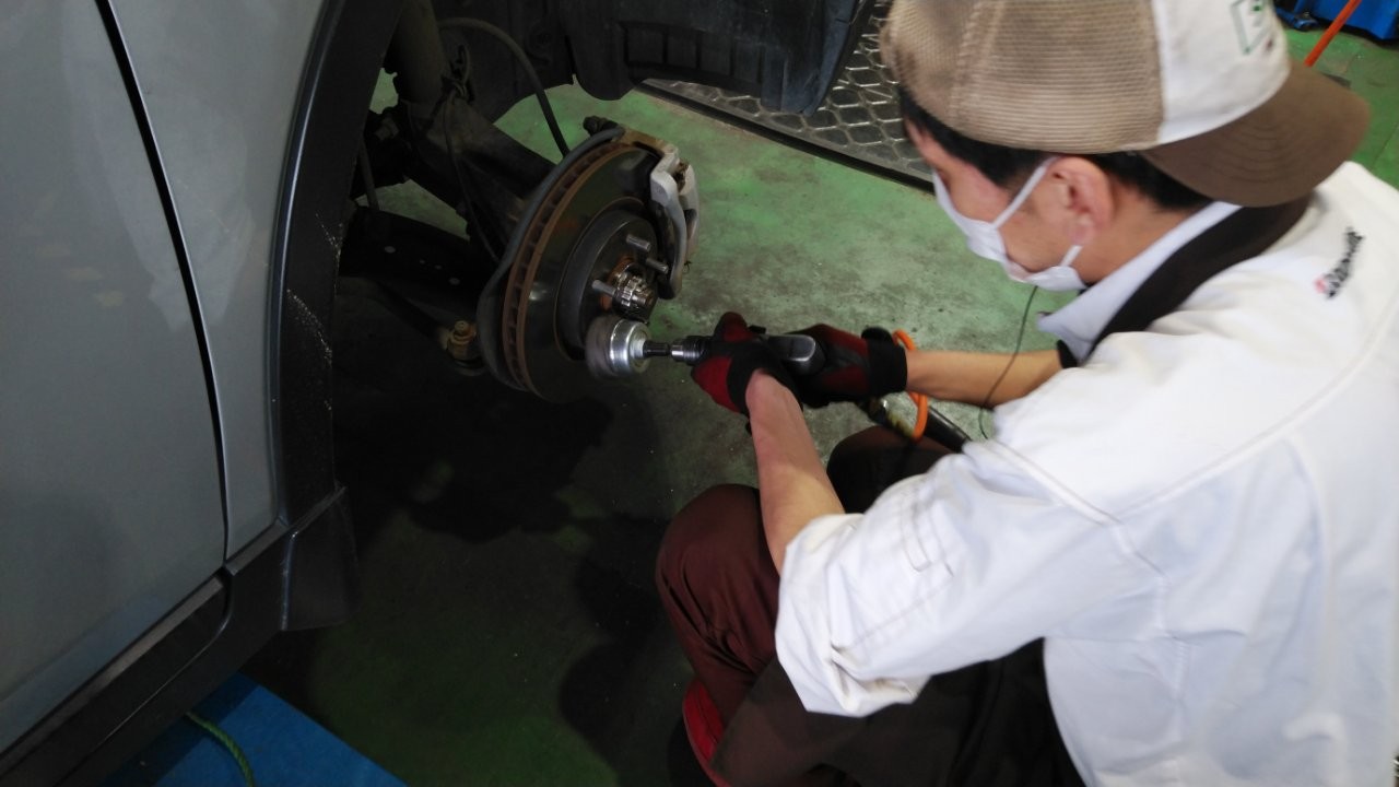 ここが錆びていると、ホイールとハブの当たり面が平じゃ無くなる為ブレの原因になることがあるのと、最悪の場合ホイールナットの緩みの原因になることもあるので注意が必要です。