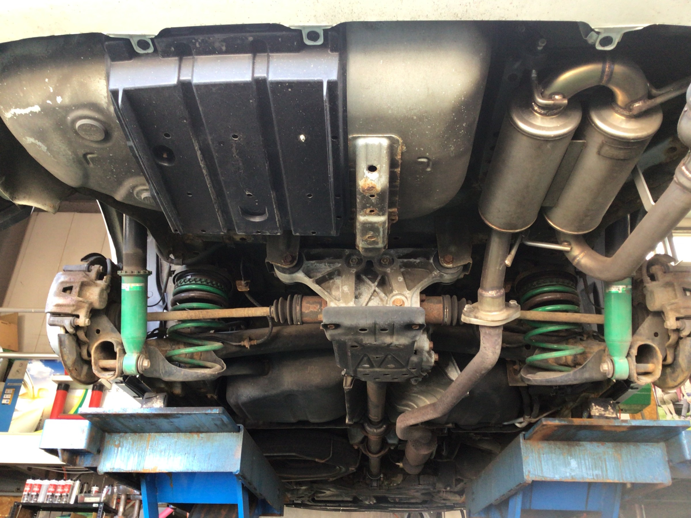 腹下をキレイに洗って、スペアタイヤ・アンダーカバーなども外して塗装します。