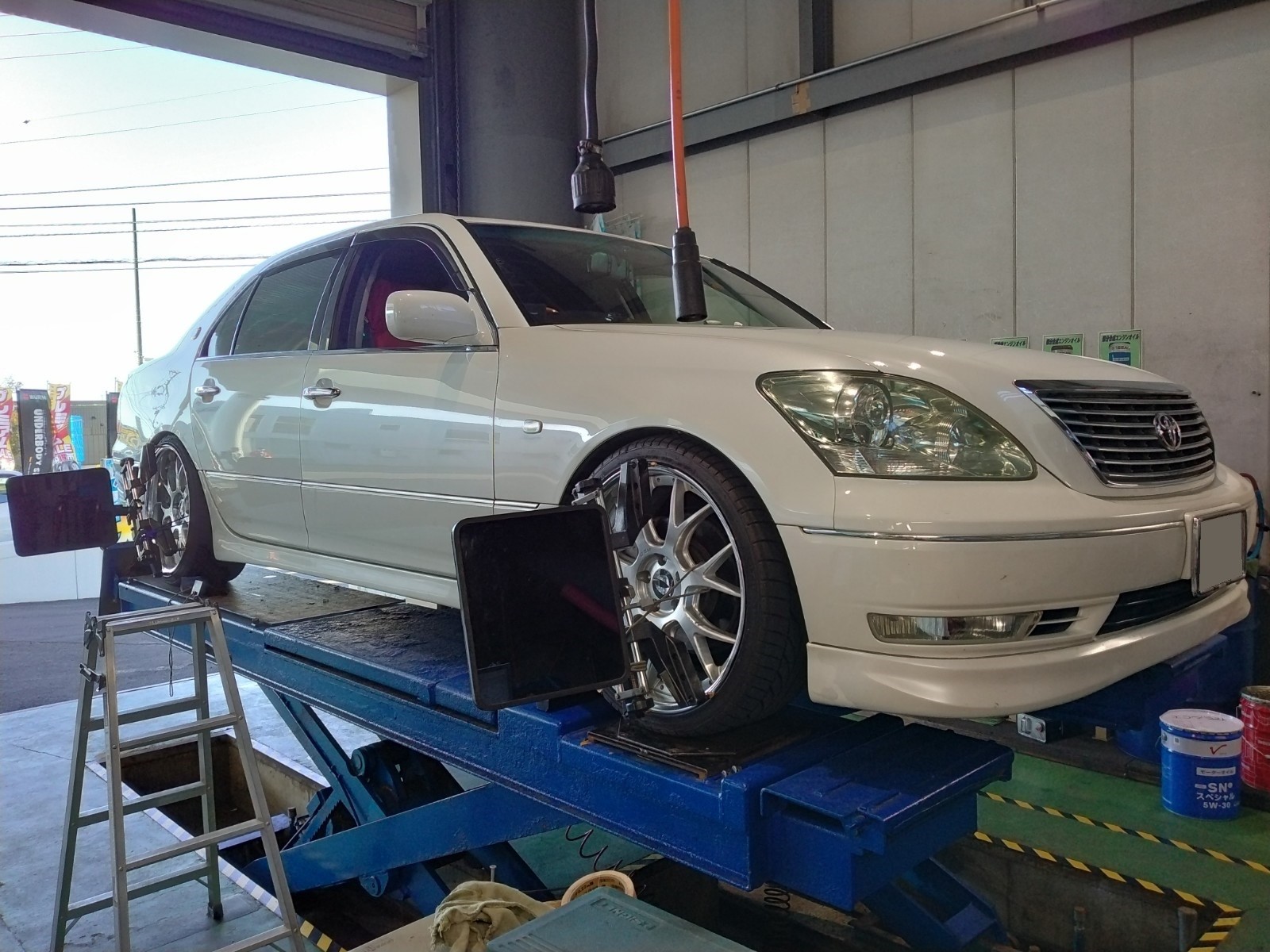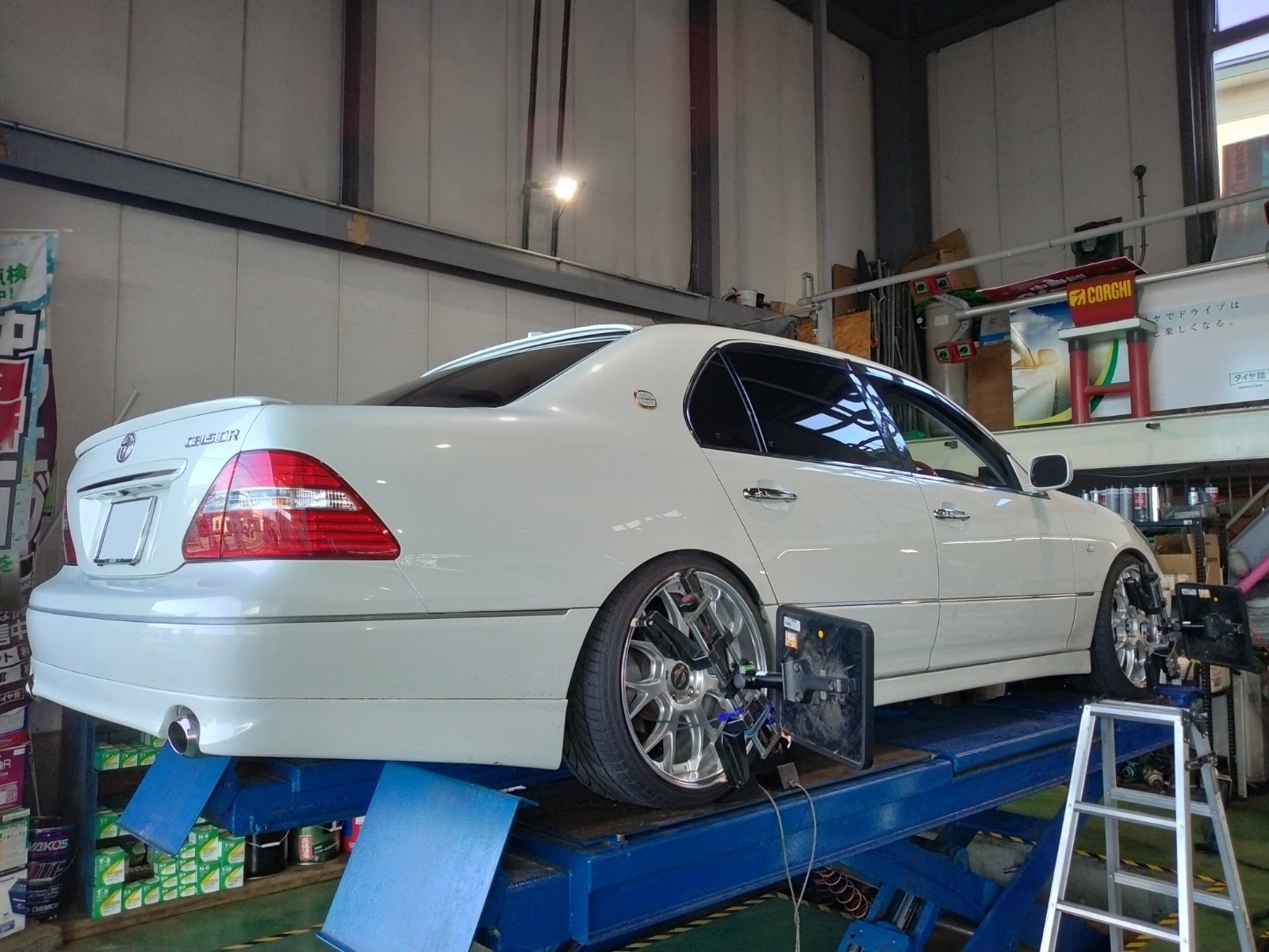 左リアのトーが開いていたのと、フロントも左右差がありましたので調整。