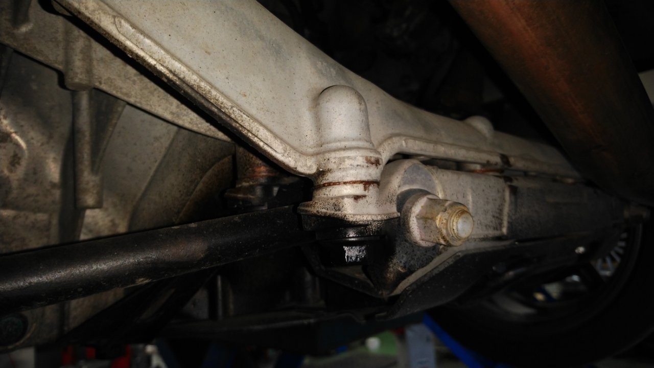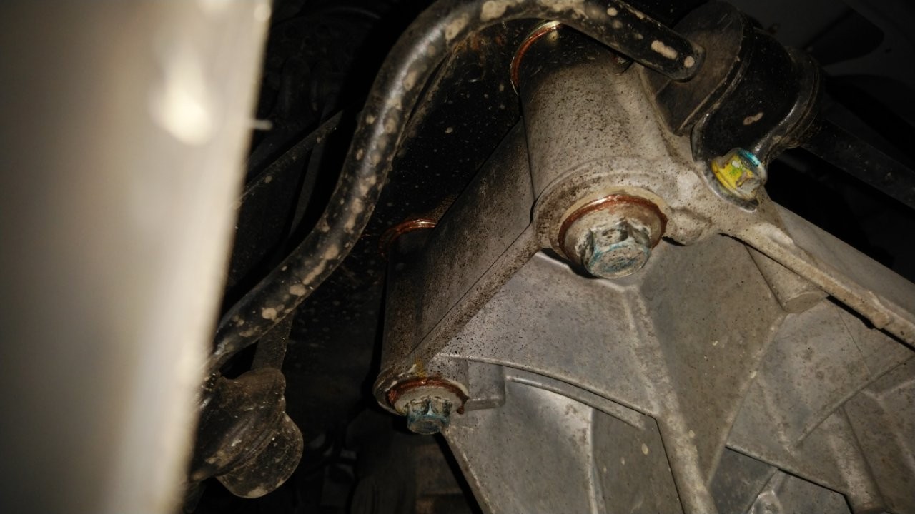 通常ステアリングギヤボックスはサブフレームに4本以上のボルトで強固に締結されています。