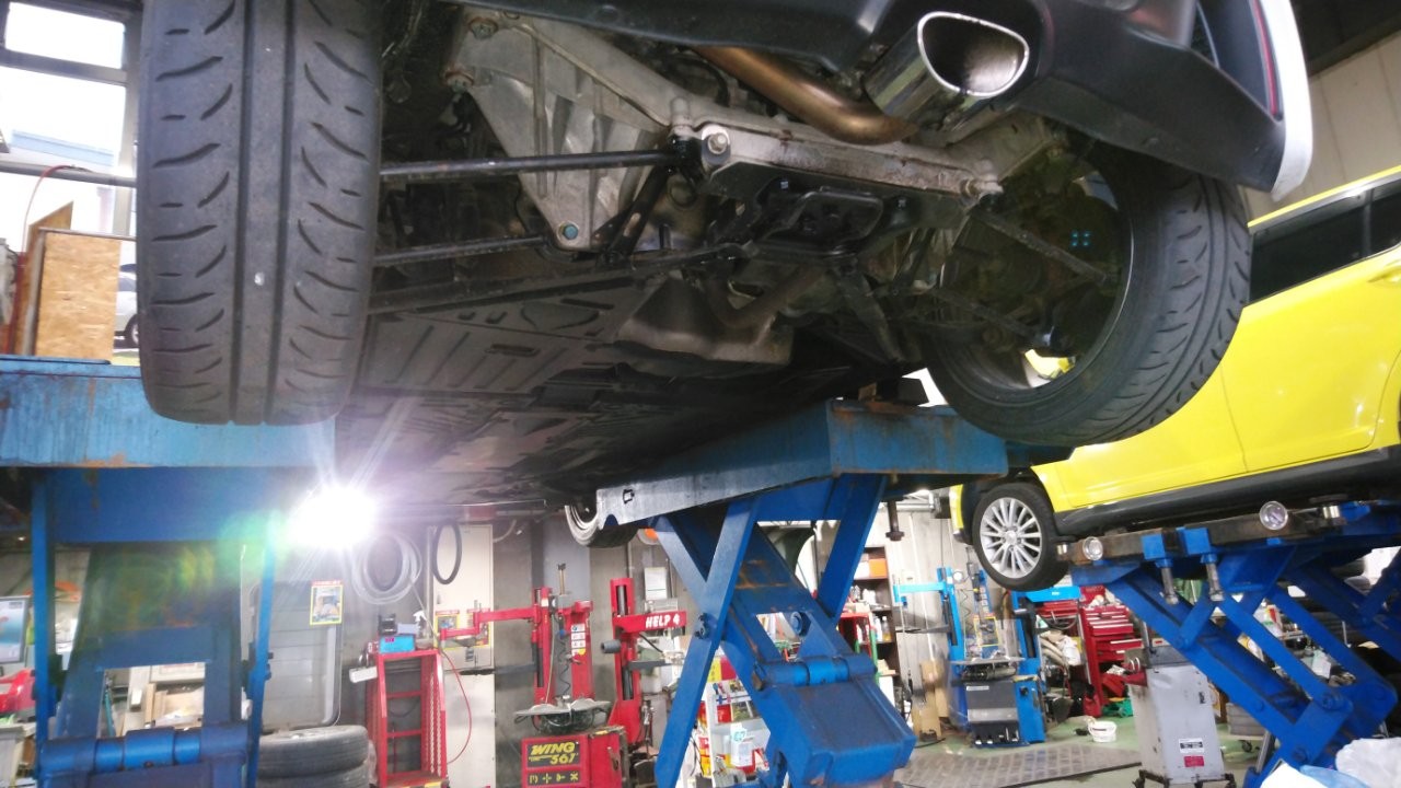 いきなりついている写真ですが、簡単に言うと純正はステアリングラックが動いちゃうのをしっかり車体に固定してあげましょうってやつです\(^o^)/