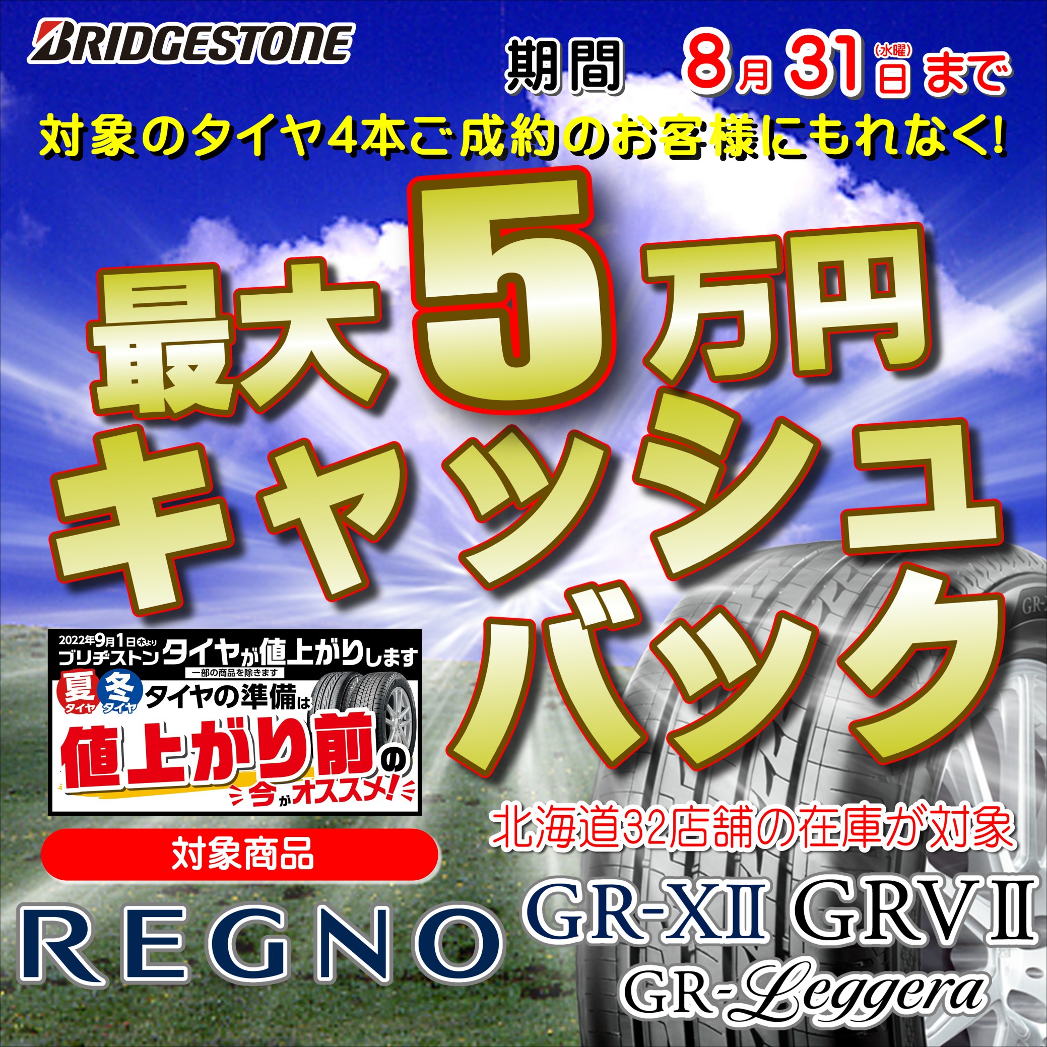 今回のキャンペーン内容はブリヂストンREGNOシリーズ4本ご成約のお客様に