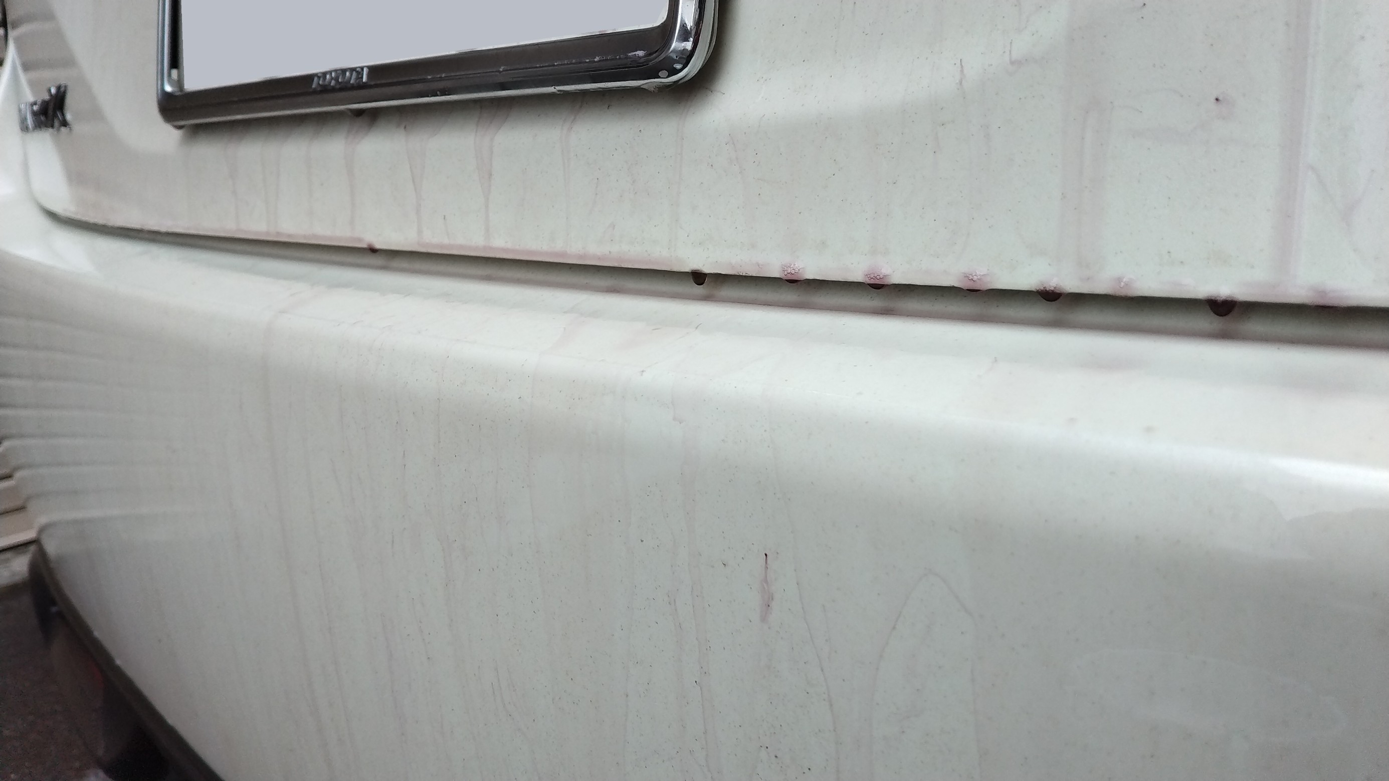 バンパーの場合はそれほど被害をこうむることは無いでしょうが、トランクやフェンダーはその鉄粉が日光などで化学反応し塗装に刺さっていきます。