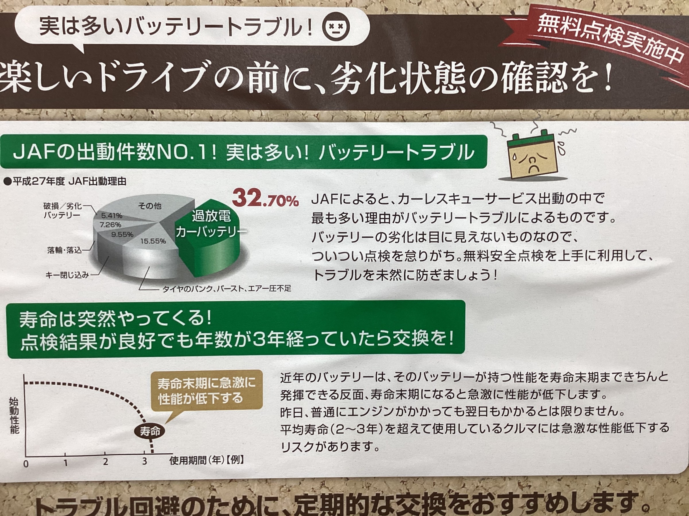 気温が下がったせいか、エンジンのかかりが悪い、バッテリー上がったので点検してくださいというお客様もたくさんいらっしゃいました。
