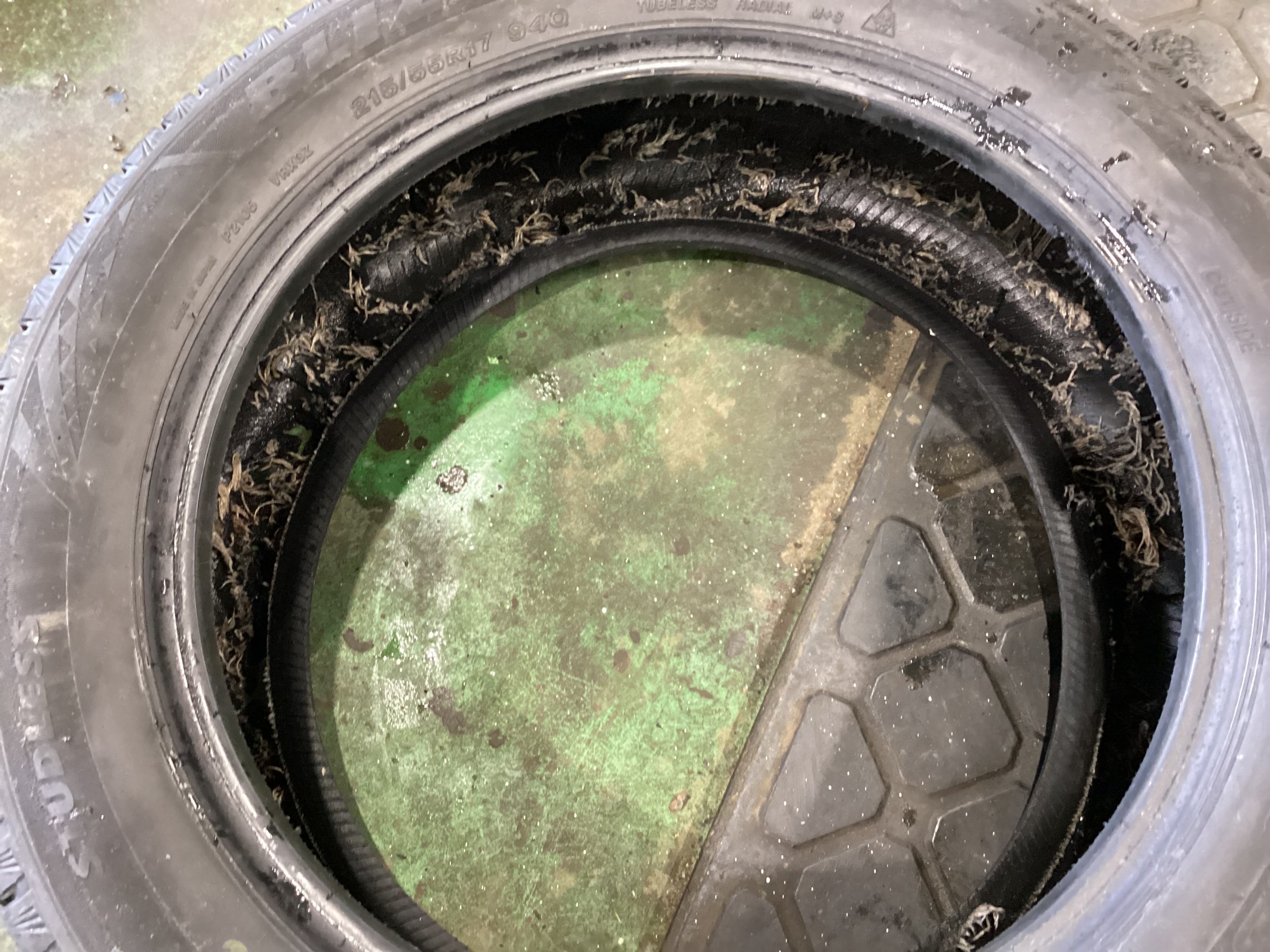 おそらく雪の中から出てきたんであろうビスが刺さっている案件が数台・・・。