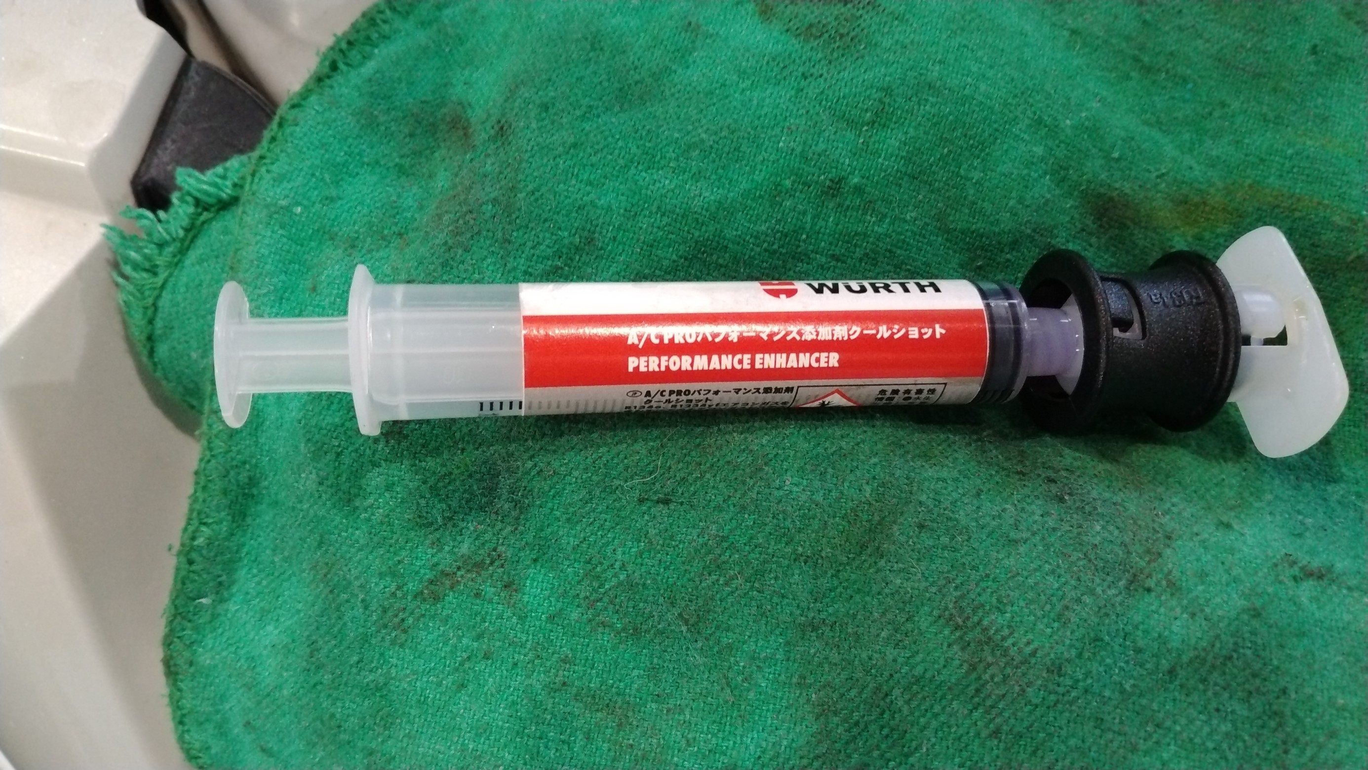 注射器をエアコンガス注入口にさして、ぴゅーっと入れるとあら不思議。