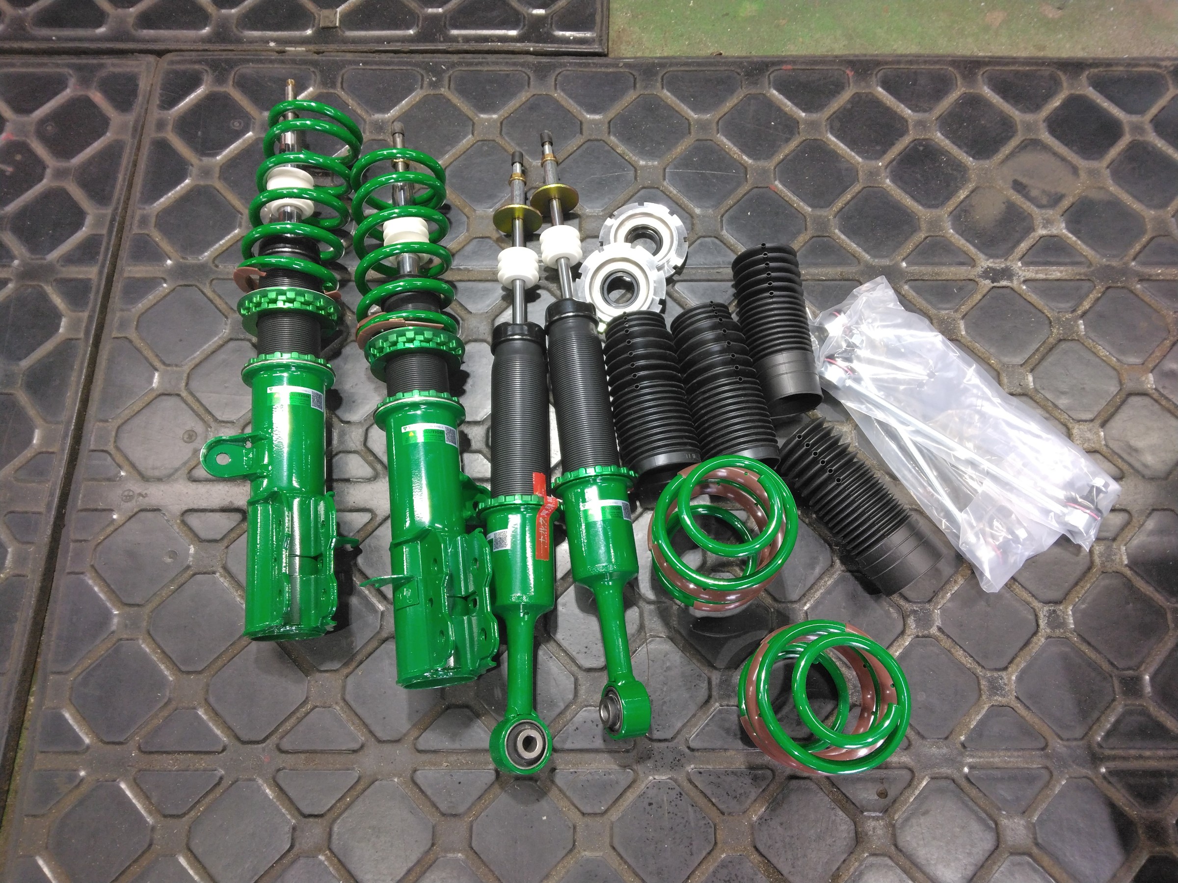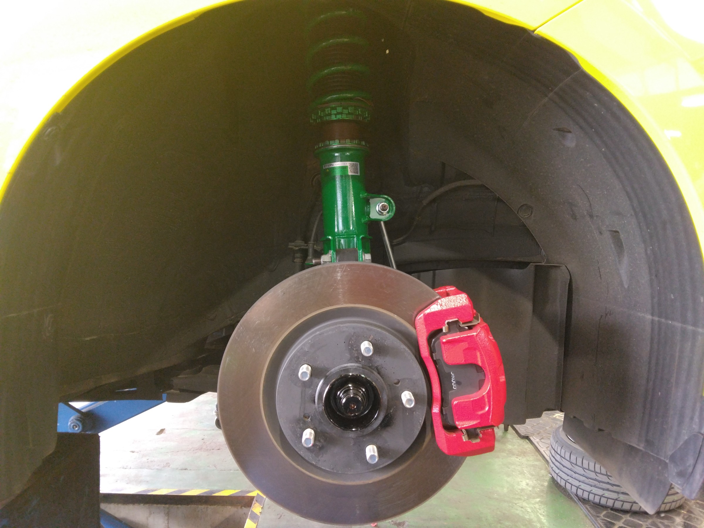 車種が車種なので、お客様の使い方をお聞きして用途によっては‶テイン モノフレックス” や ‶HKS ハイパーマックス” をオススメすることもありますが、今回は見た目と乗り心地をメインにという事で‶テイン フレックスZ”をお選びいただきました(''◇'')ゞ