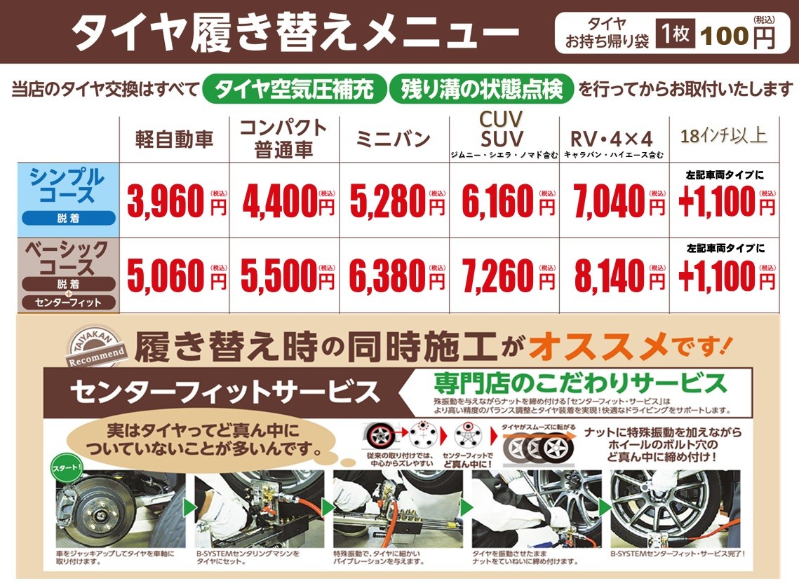 ※車種・タイヤサイズにより価格が異なりますので