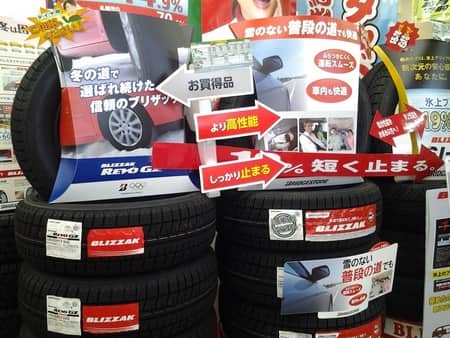 店内は、徐々にスタッドレスタイヤに展示を変えています