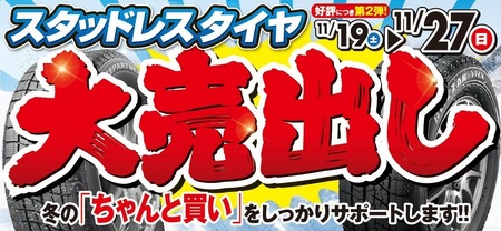 タイヤ『大売出し』開催中!! 土、日曜日のあと2日間!