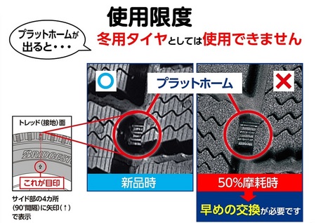 4年以上使用しているスタッドレスタイヤは、交換時期ですよ