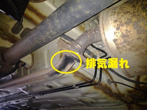 排気マフラーがサビて穴が空き