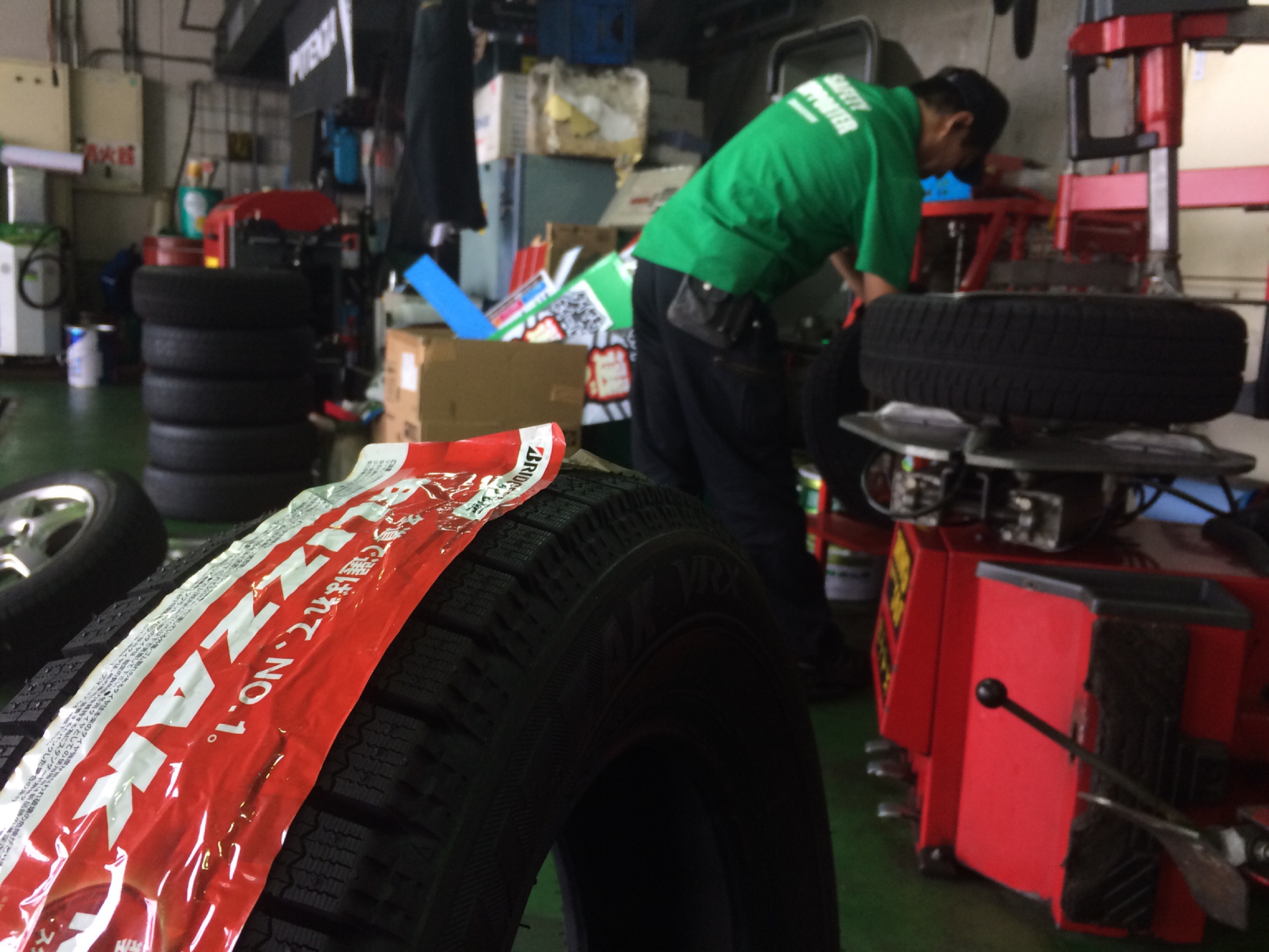 本日も長谷川スタッフがご予約いただいたタイヤの組込作業をしています!