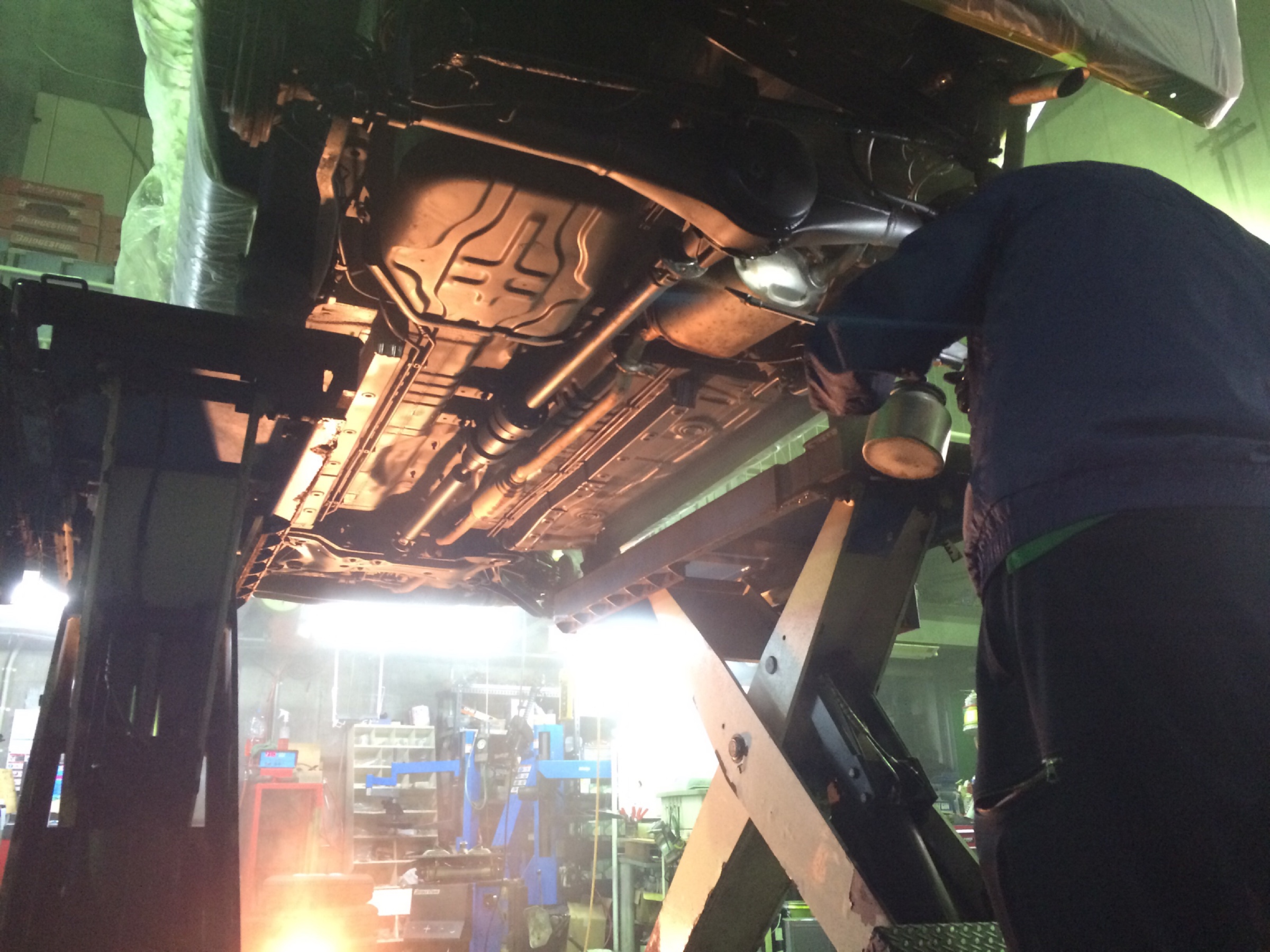 本日は車検でお預かりしたお車のサビ止め塗装を実施いたしました!
