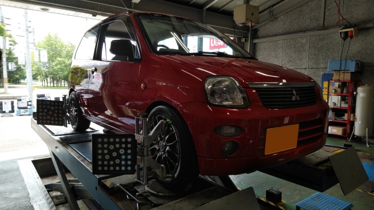 実家の”H42V ミニカ”のタイヤ交換・足回り交換・アライメント・オイル交換・ナビ移植。