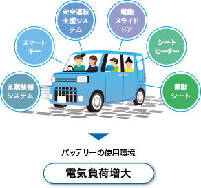 さらに新採用の「デュアルリブセパレータ」は、負極側にも新たにリブを形成することによって、極板全体での反応を活性化。充放電の繰り返しによる放電電圧の落ち込みを抑え、アイドリングストップ寿命の向上に大きく貢献します。