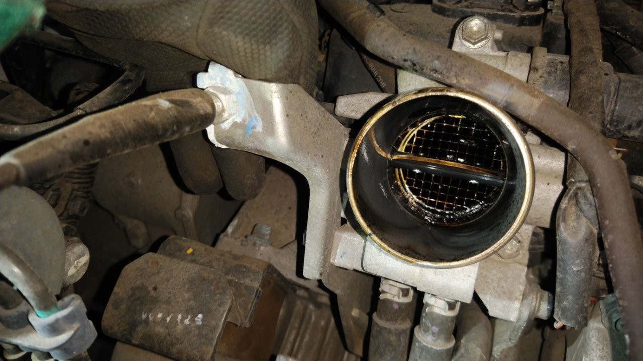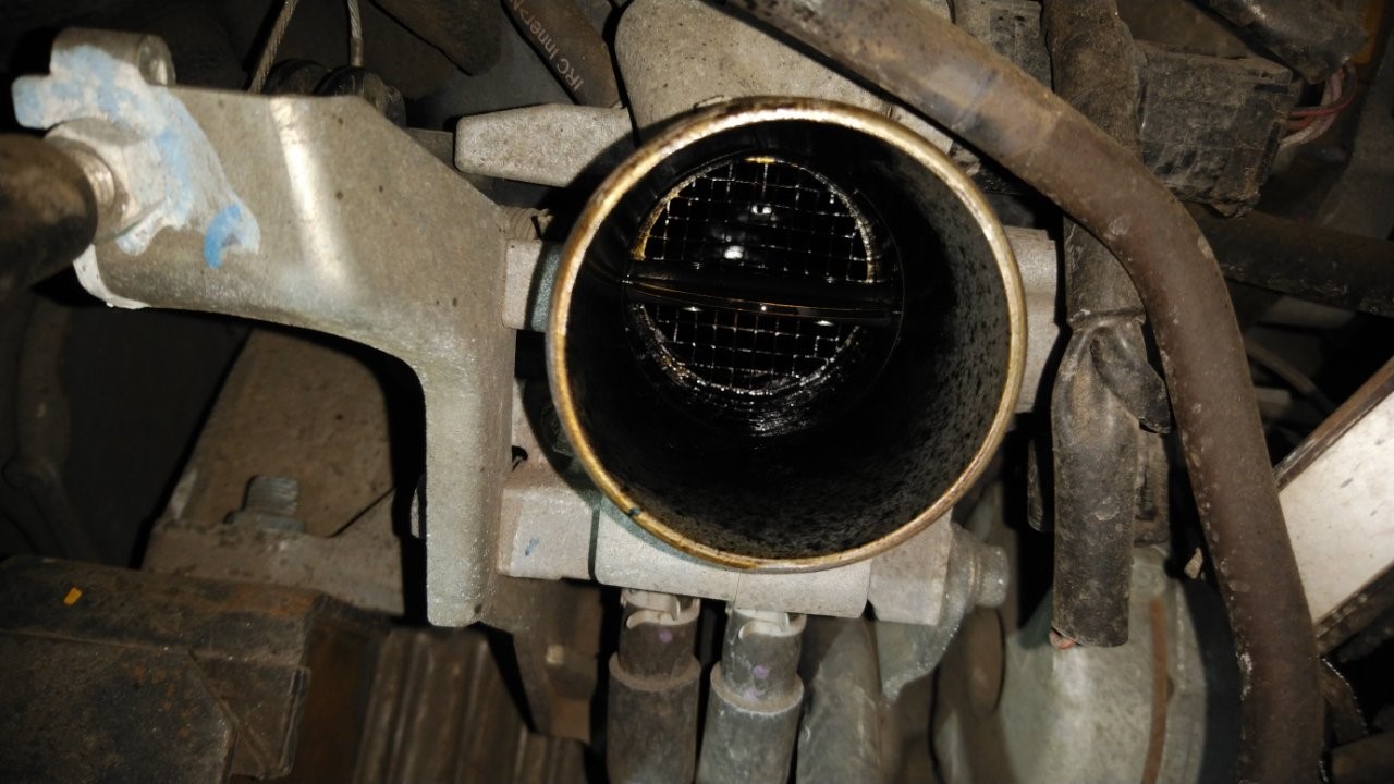 パカッっとスロットルを空けてみると真っ黒です(゚д゚)!