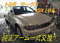 どうも、‶今月は皆様の愛車リフレッシュを全力でお手伝い!!”実行委員長かけるです。 その第一弾!?として ‶トヨタ マークⅡ” ‶GX105” こちらのお客様は以前、僕のご指名でアライメントをご利用いただきましてその後いろいろとご相談を頂いておりました(^-^) で、今回は足回りの総リフレッシ...