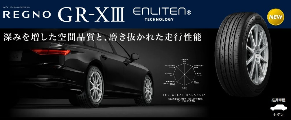 深みを増した空間品質と、磨き抜かれた走行性能 THE GRATE BALANCE 新たなレグノフィーリングの実現、レグノは新しい次元へ ブリヂストンのコンフォートフラッグシップタイヤであるレグノが新しくなりました‼ セダンにお乗りのお客様に体感していただきたいタイヤです(*‘ω‘ *)