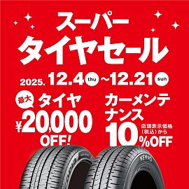 記事一覧 12月4日からスーパータイヤセール開催中です(*'▽') いつも当店をご利用いただきまして、誠にありがとうございます コクピット・タイヤ館「スーパータイヤセール」は12/4(木)から開催中です! アプリから簡単にお得なクーポンがダウンロードできます! ブリヂストンブランドのタイヤを4本ご購入時、 店頭表示価格から、最大20,000円引きのタイヤクーポ... 2025年12月6日 ポスト