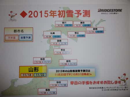 今年の初雪予報は、11月22日(日)ですね。