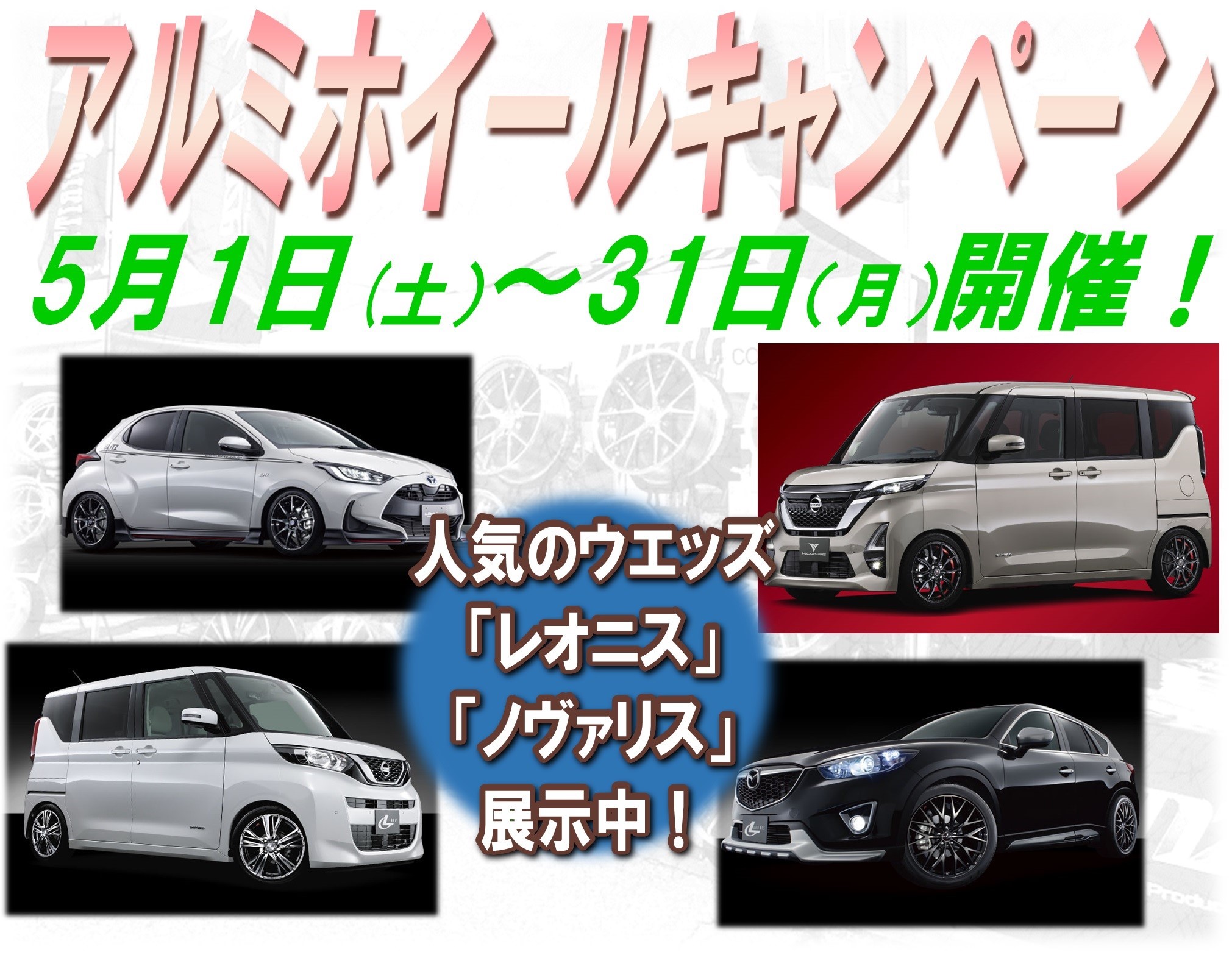 本日最終日です! ポスト 2021年5月31日 皆様こんにちは! 5月1日(土)~実施の アルミホイールキャンペーンも 早いもので本日最終日です! タイヤ交換はしたけど・・・ ホイールに傷があり気になる・・・ ホイールのデザインを変えて 車のイメージを一新したい! ホイールのカバーが欠けていて不格好などなど 人気の軽自動車やコンパクトカーを中心とした お得なキャンペーンです! 人気ホイールメーカー wedsのレオニスやノヴァリスなど 各メーカーのホイールをご案内しております! ギラギラのホイールから かわいらしいホイールまで 各種ご覧いただけます。 wedsホームページはこちら まだ間に合います!! ぜひこの機会にご検討ください! お電話・メールでも お気軽にお問い合わせください tel:025-268-7575 mail: tk.terao@bridgestone.com おまちしております! #タイヤ館寺尾 #タイヤ館 寺尾 #新潟市西区 #タイヤ館 #weds新潟 #025-268-7575 カテゴリ:ホイール関連 担当:藤野