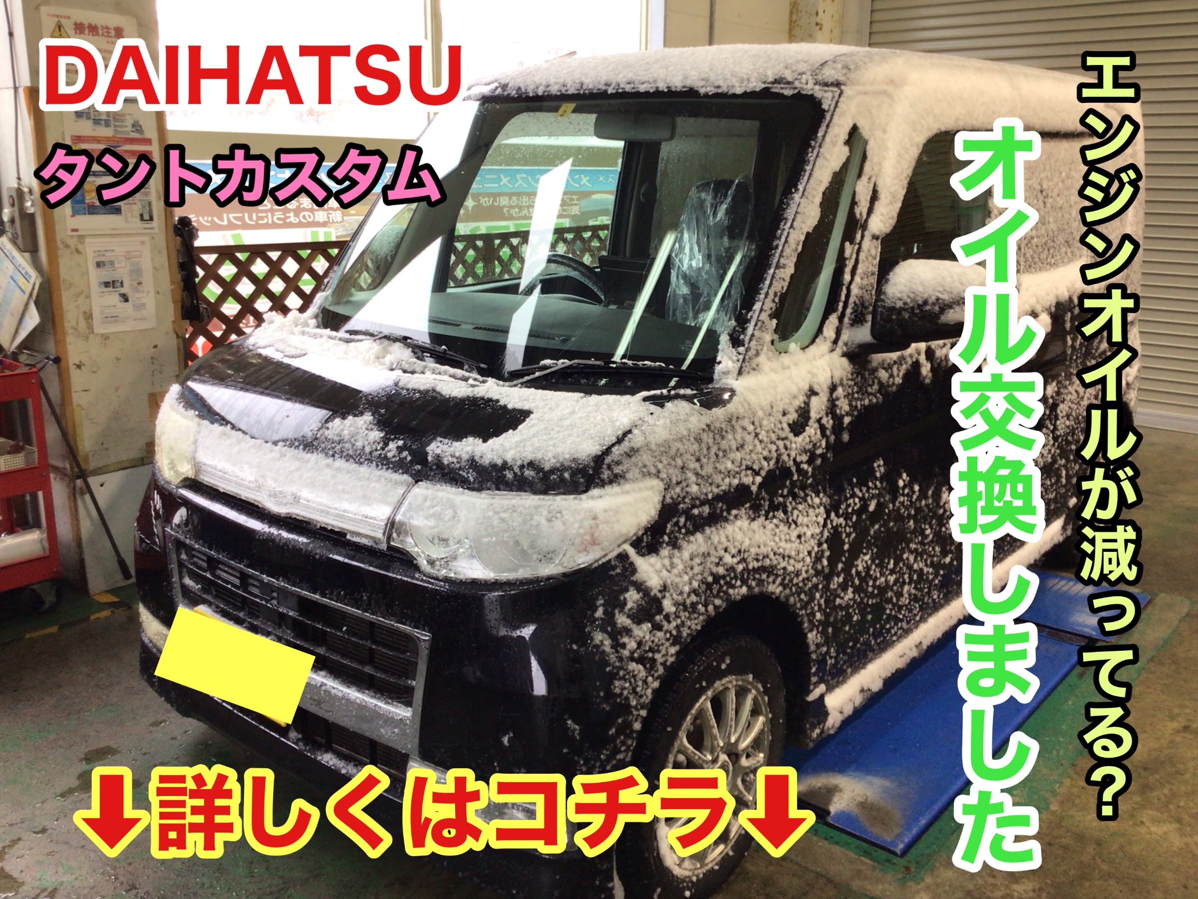 ダイハツのお車のエンジンオイル減り増えています。【ダイハツ タントカスタム】オイルしました〜