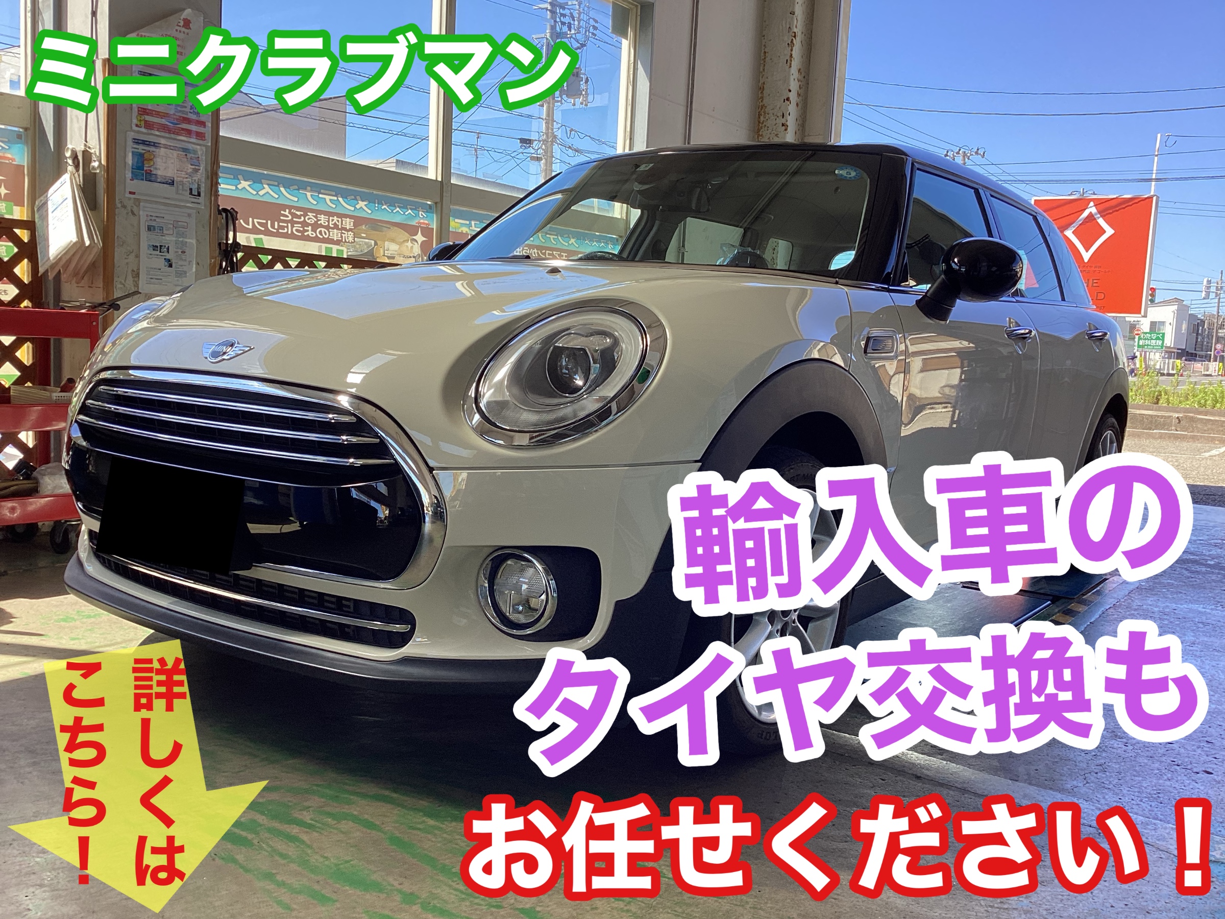 輸入車のタイヤ交換もお任せください!ミニクラブマンのタイヤ交換しました!