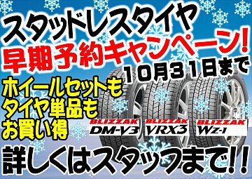 スタッドレスタイヤ WZ-1 VRX3 キャンペーン 継続!