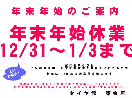 本日より 通常営業 エアコンフィルター 年末年始 お出かけ タイヤ館