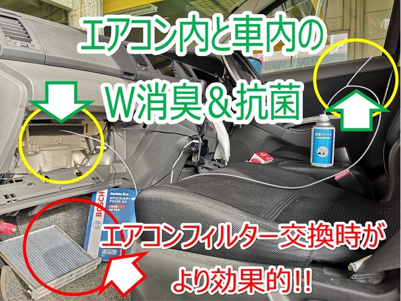 エアコン内の嫌な臭いも車内に溜まった臭いもダブルで消臭!!