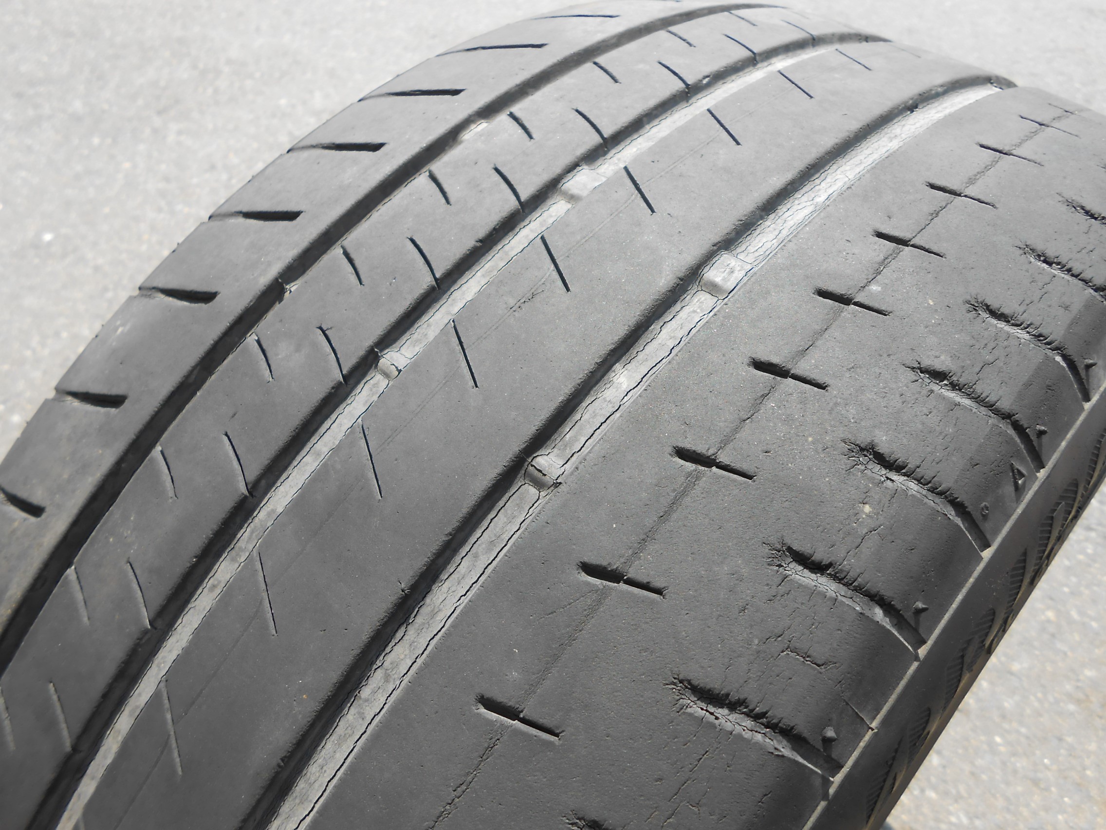 交換前のタイヤを診断したところ、外側にはっきりと偏摩耗が見られたので、