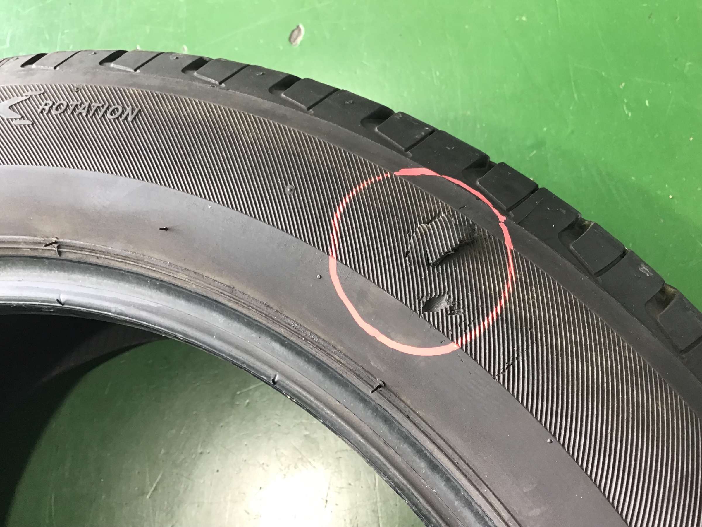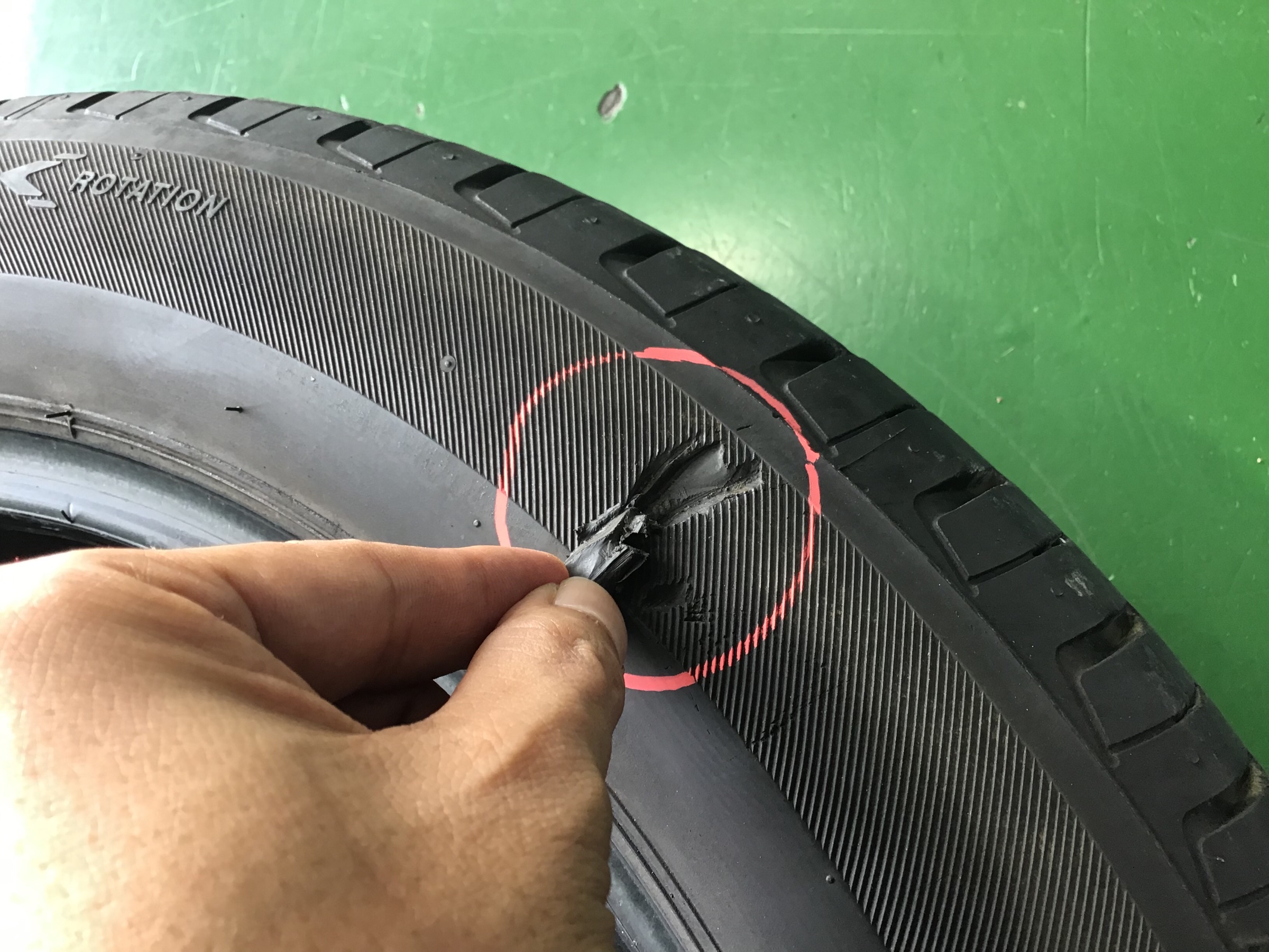 写真のとおりタイヤのサイド(横)部分は5mm程度しか厚みが無いため、