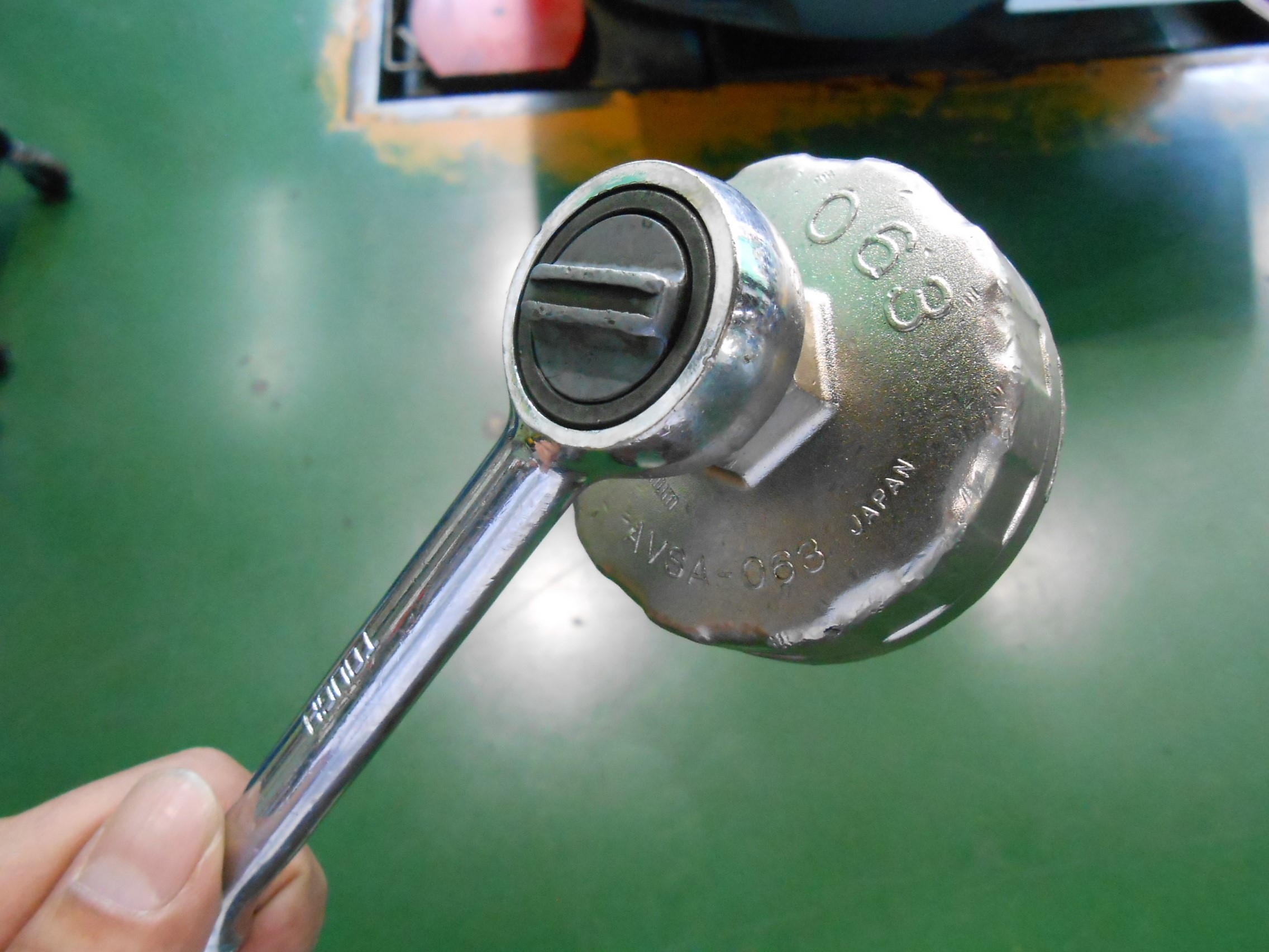 雑談になりますが、オイルフィルターを外す際にはラチェットと『オイルフィルターカップレンチ』と