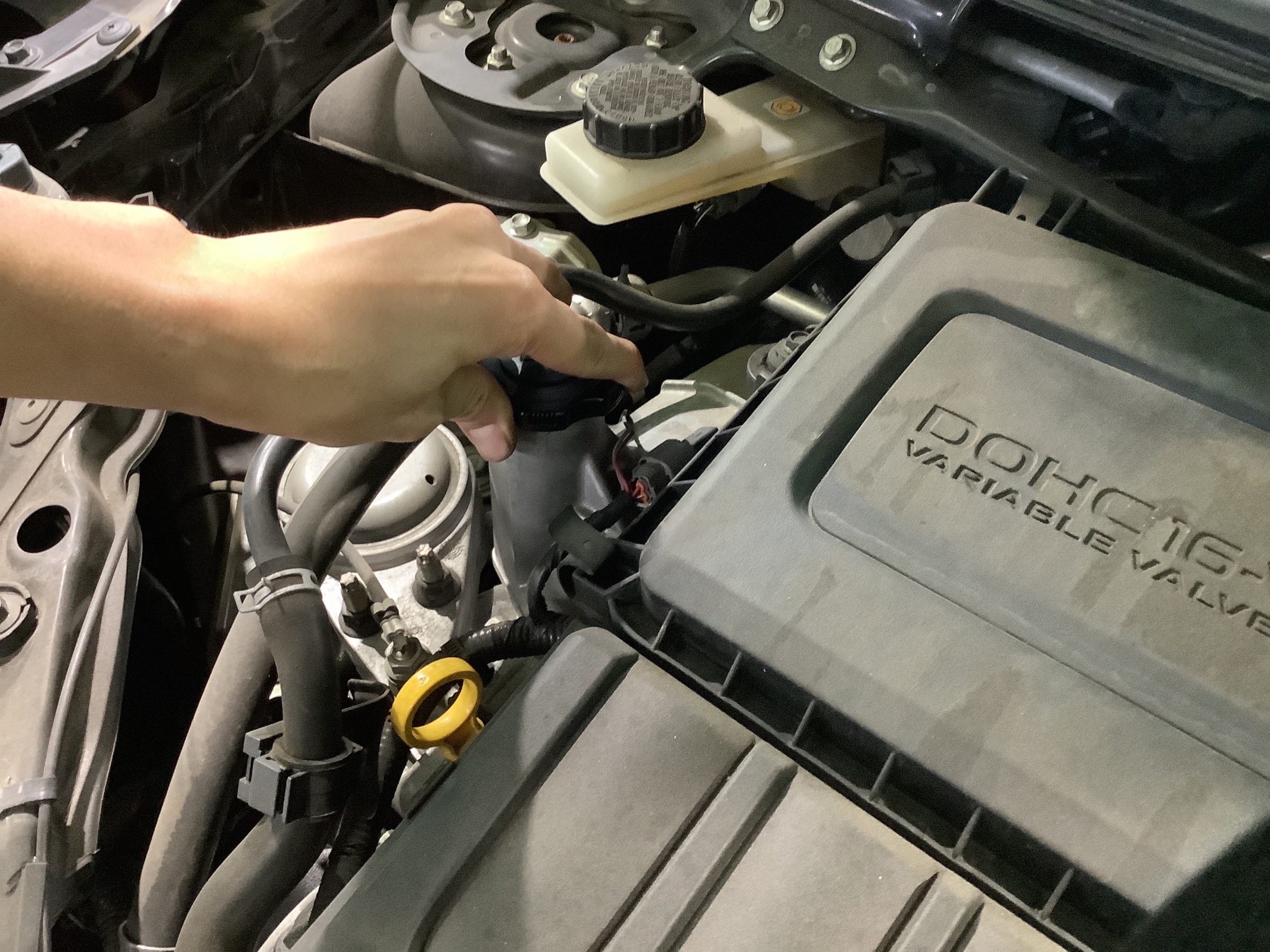 給油口のキャップ(オイルフィラーキャップ)の締め付け確認を行なって終了です。