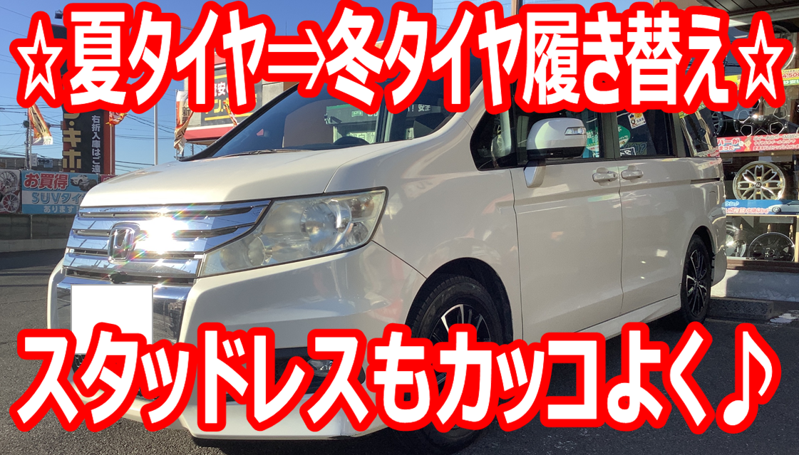 本日はホンダ・ステップワゴンのスタッドレスタイヤ、アルミホイールセットでの交換のご紹介です(^^)