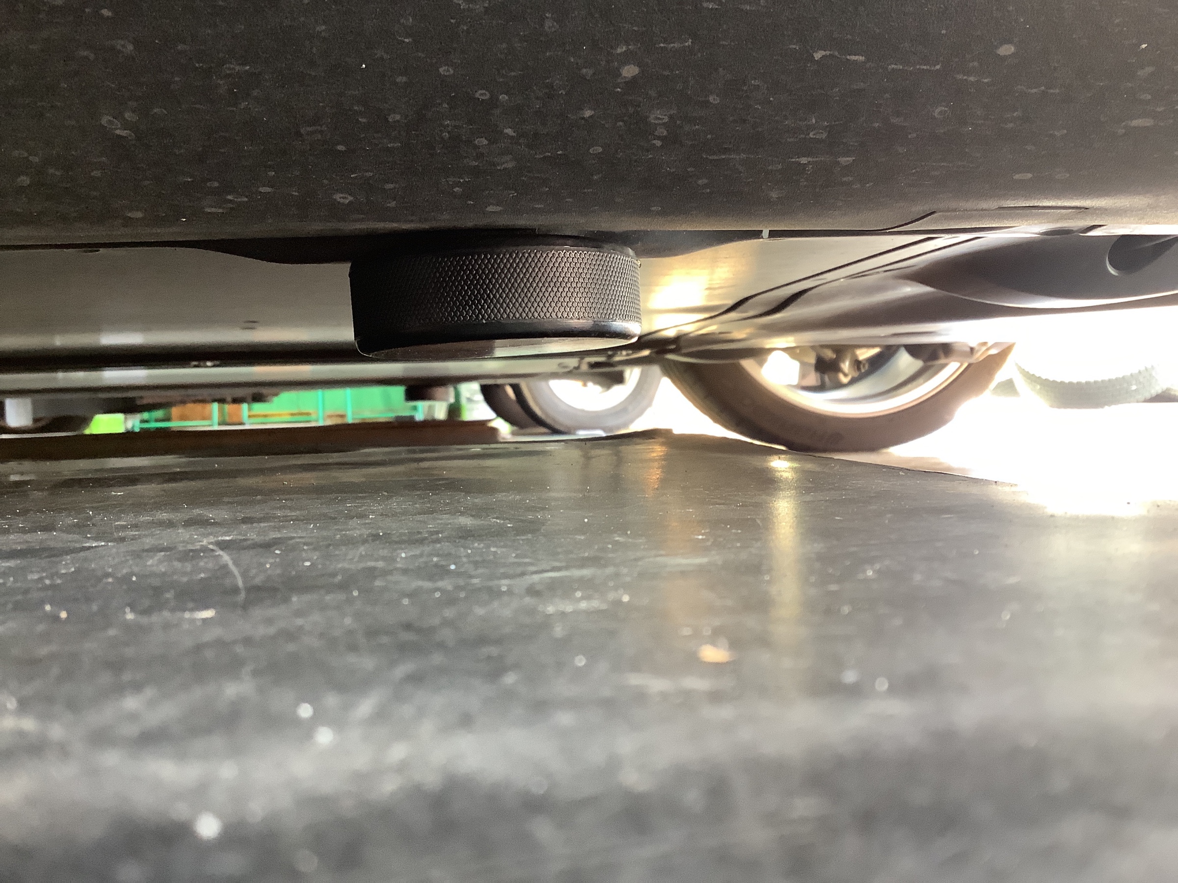 テスラでは専用のジャッキアップパーツを使用しリフトアップしていきます!