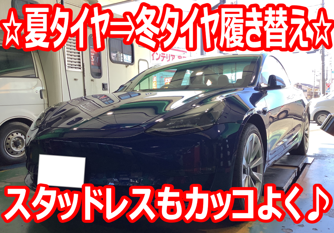 本日はテスラのスタッドレスタイヤ&ホイールセットでの交換のご紹介です(^^)♪