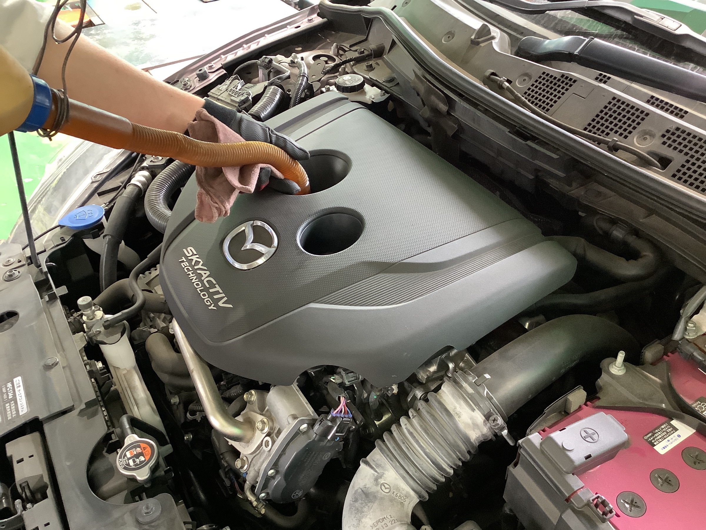 すべてのオイルの抜き取りが終わったら、新油を入れていきます。